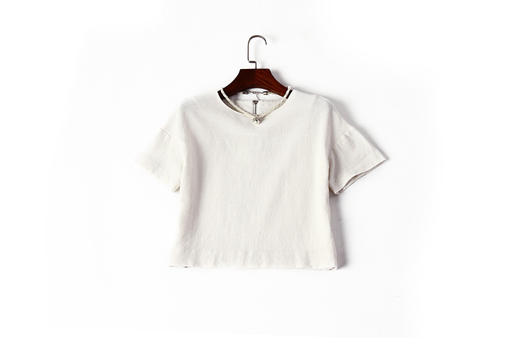 2015夏季女装纯色棉麻大口袋短袖女T恤+系带直筒七分裤套装送腰带