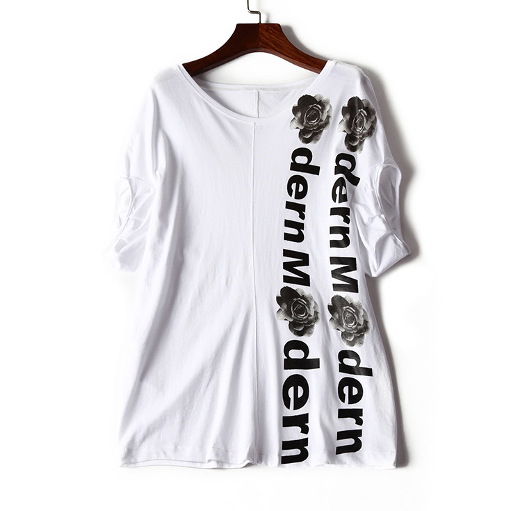 > 2015夏季新款女装 欧美时尚圆领落肩袖字母印花宽松女品质T恤