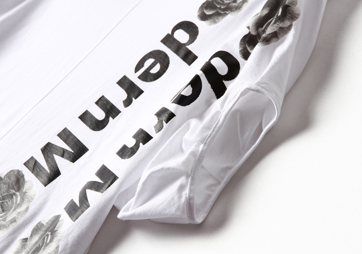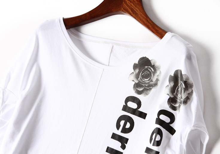 2015夏季新款女装 欧美时尚圆领落肩袖字母印花宽松女品质T恤