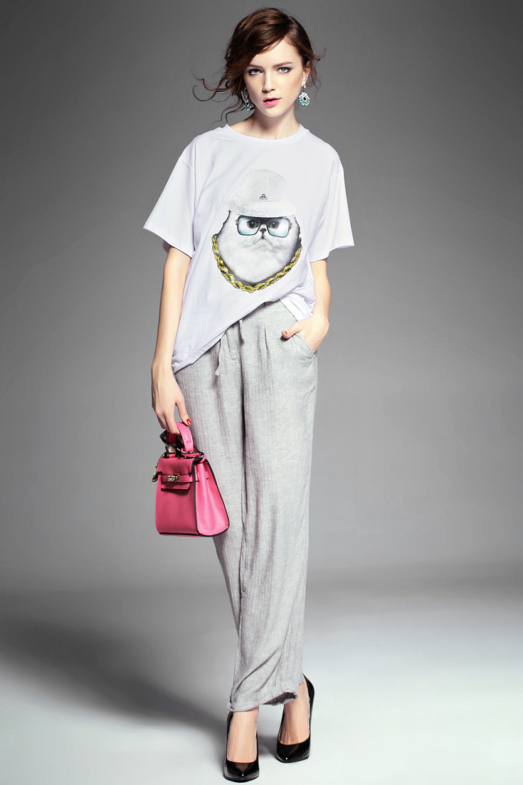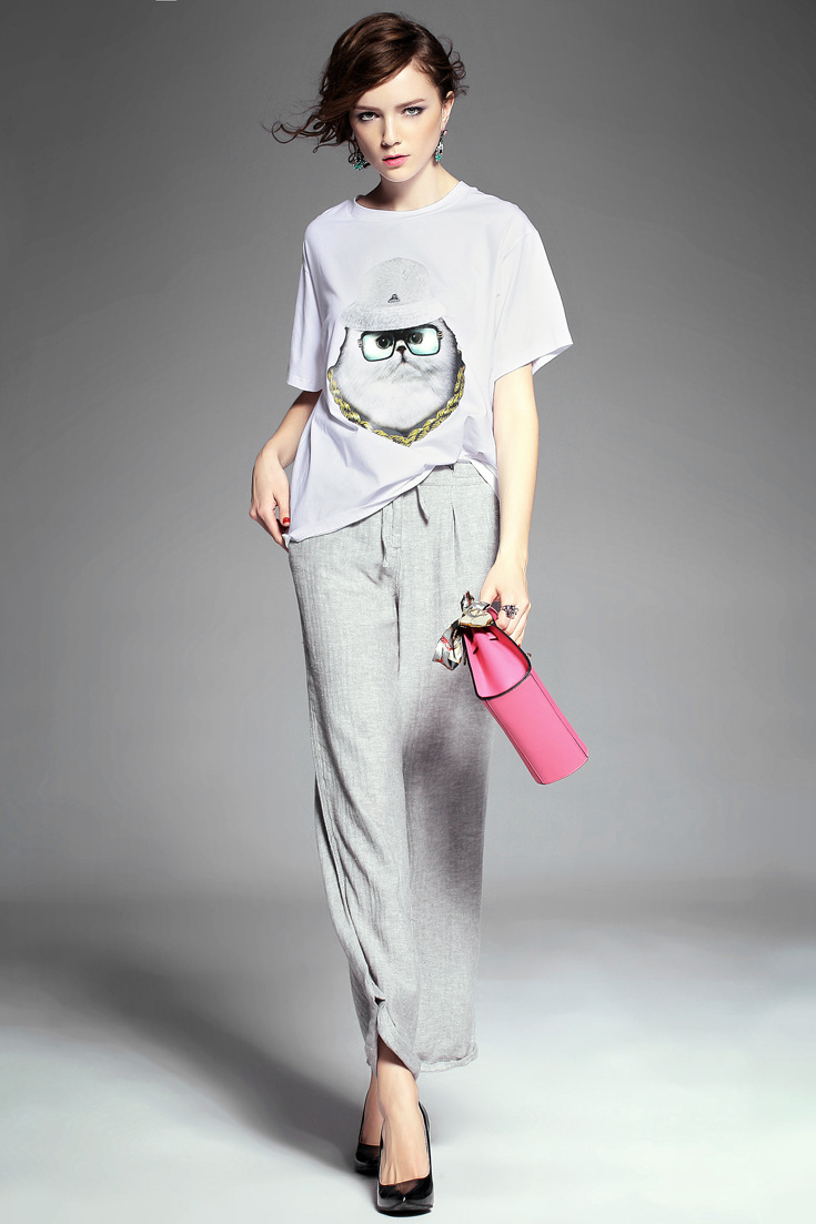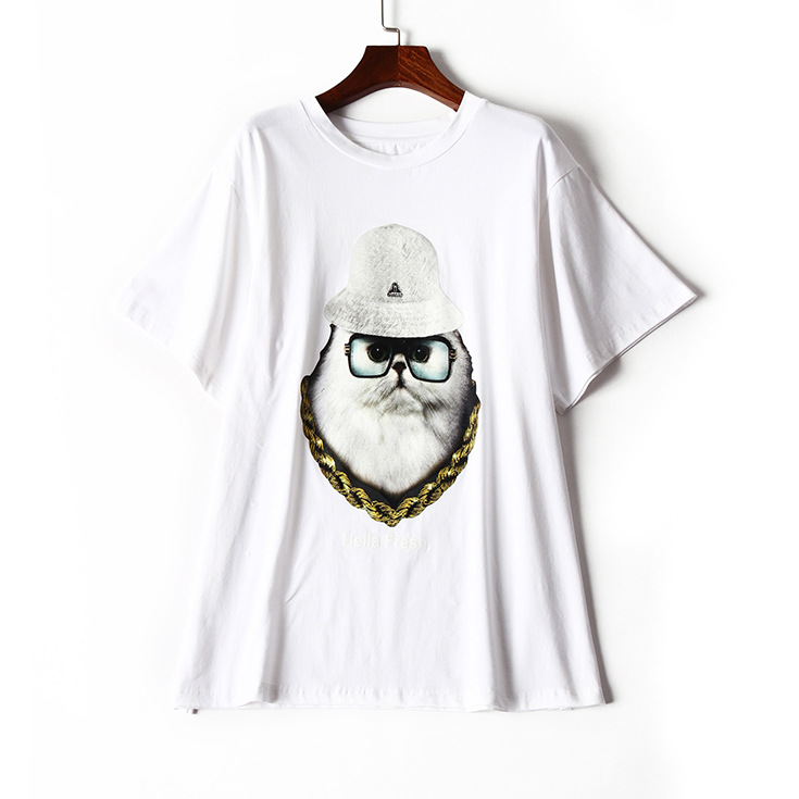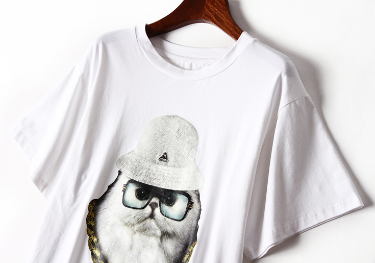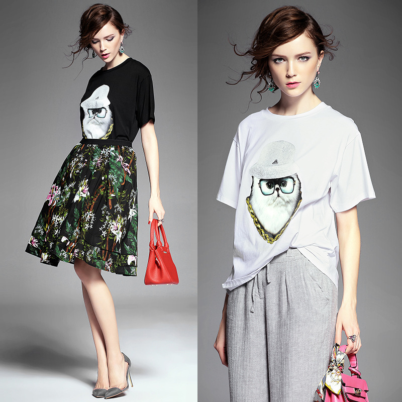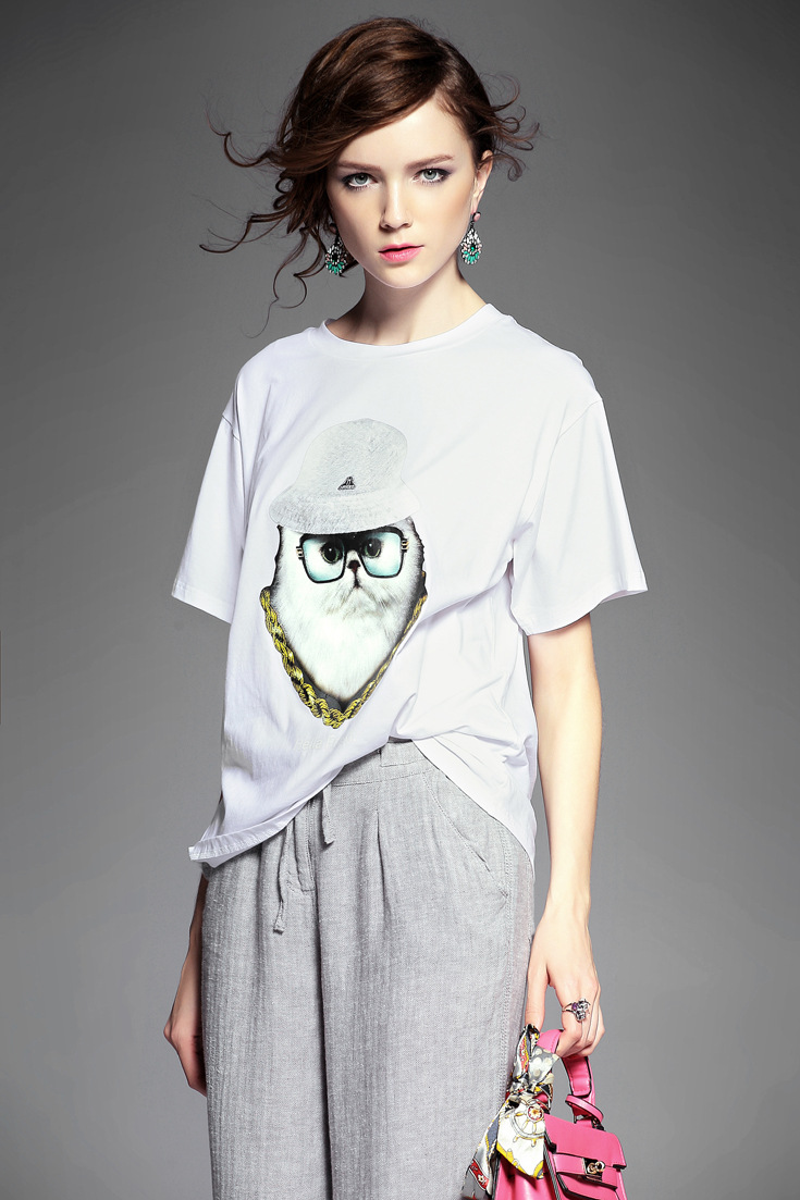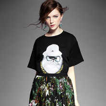 > 2015夏季女装新款 圆领卡通狗印花时尚纯棉宽松T恤女短袖