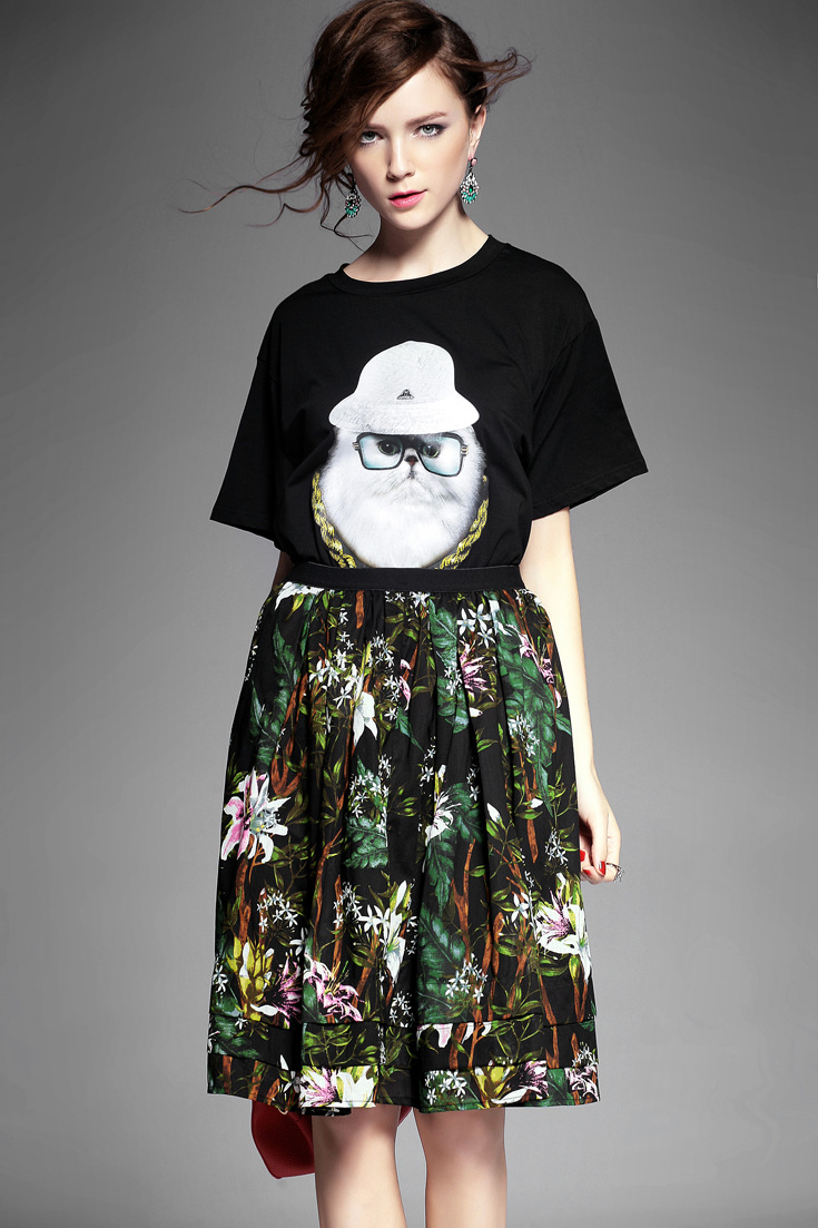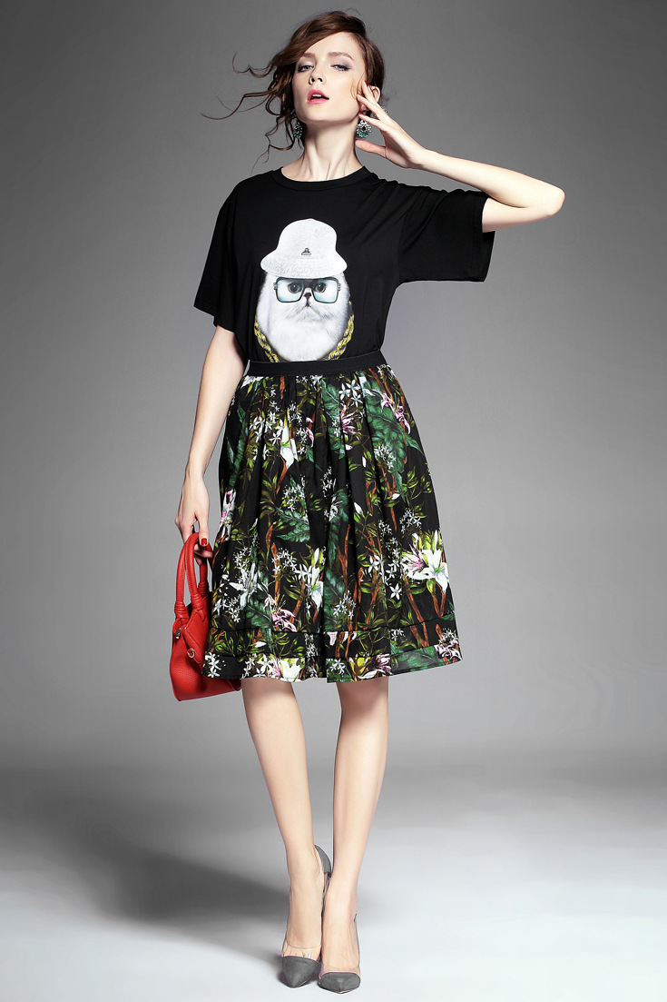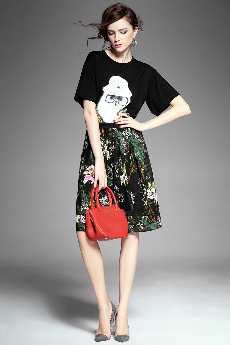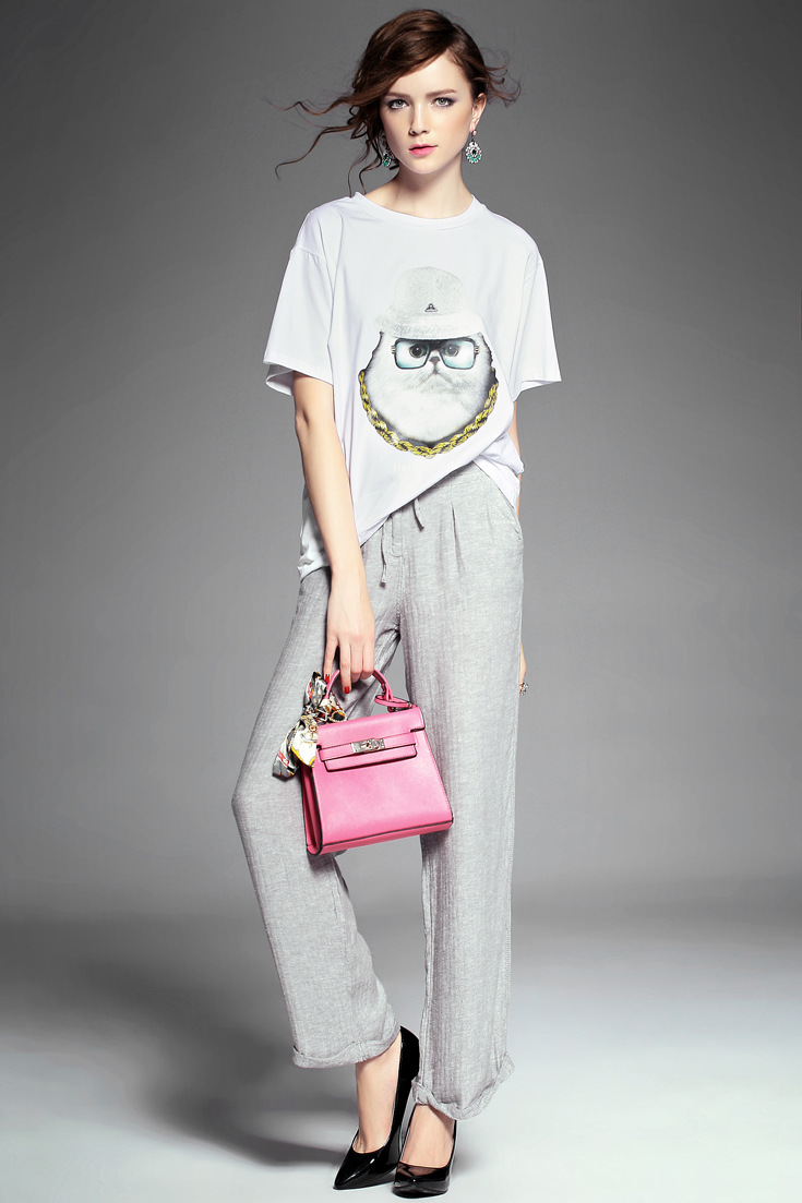 > 2015夏季女装新款 圆领卡通狗印花时尚纯棉宽松T恤女短袖