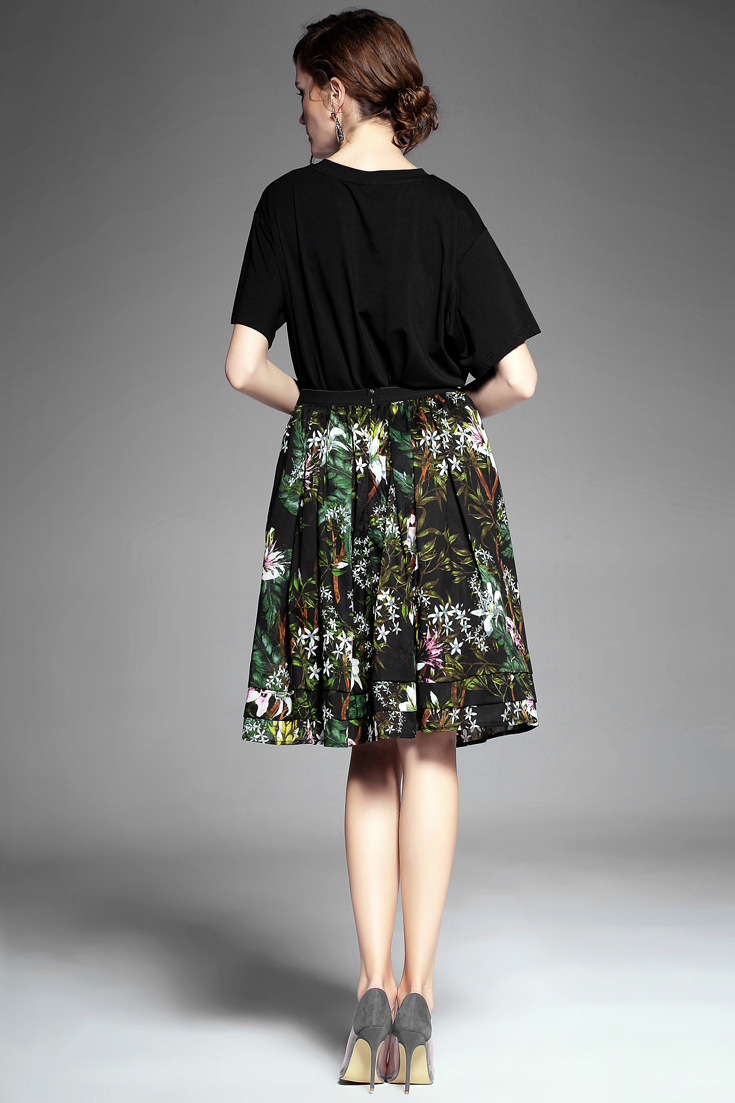 2015夏季新款女装 欧美高端圆领印花蕾丝波浪边拼接长款女T恤