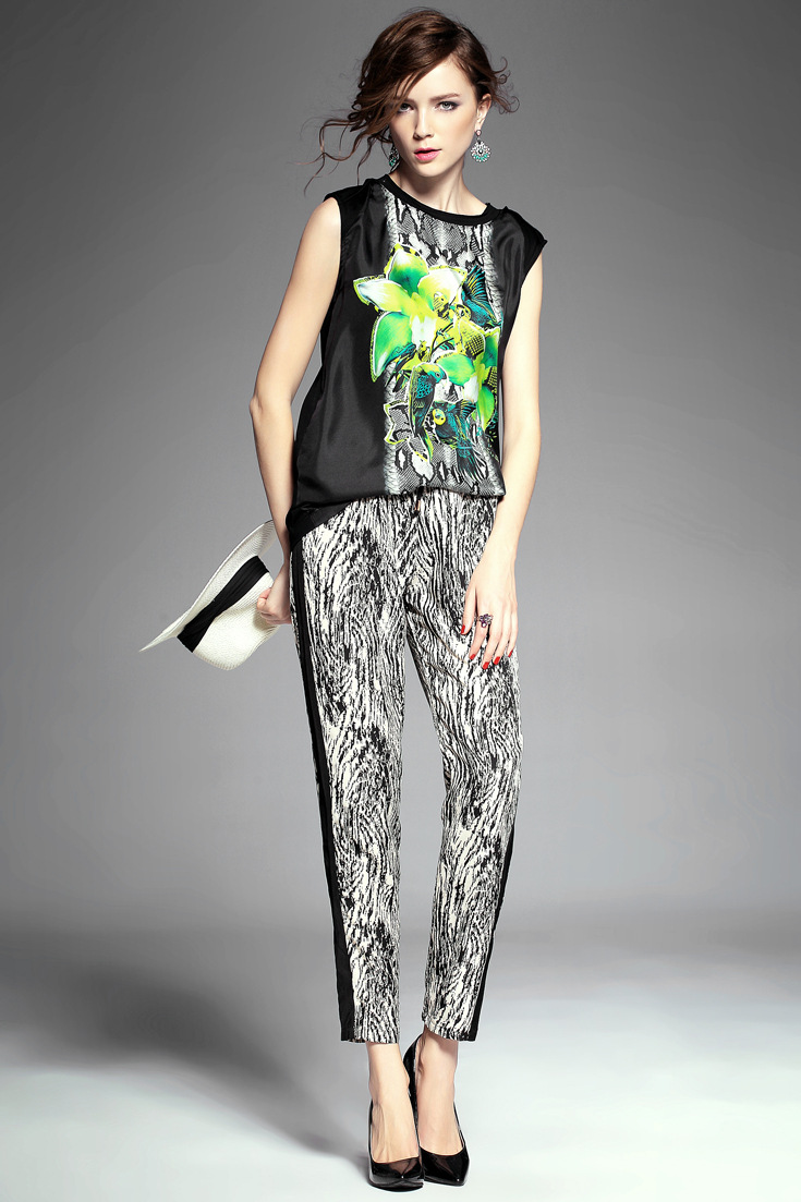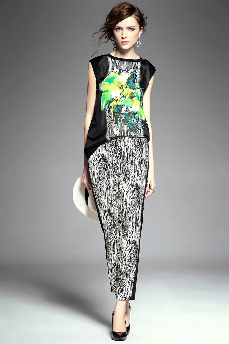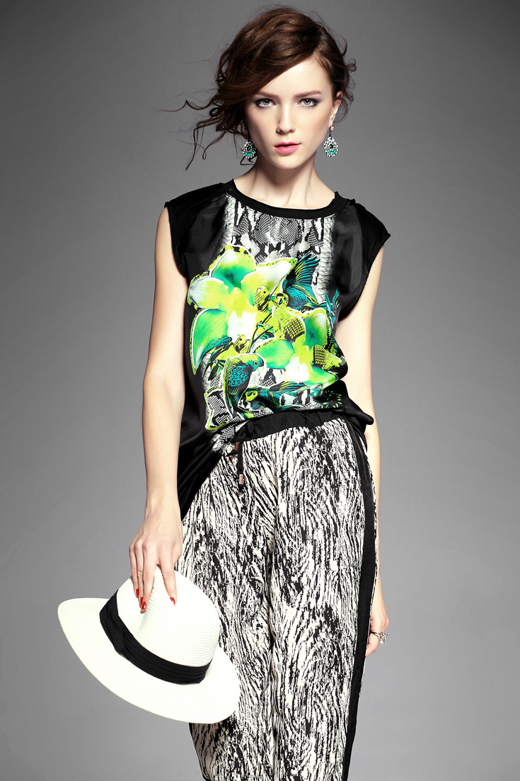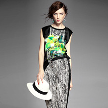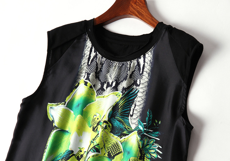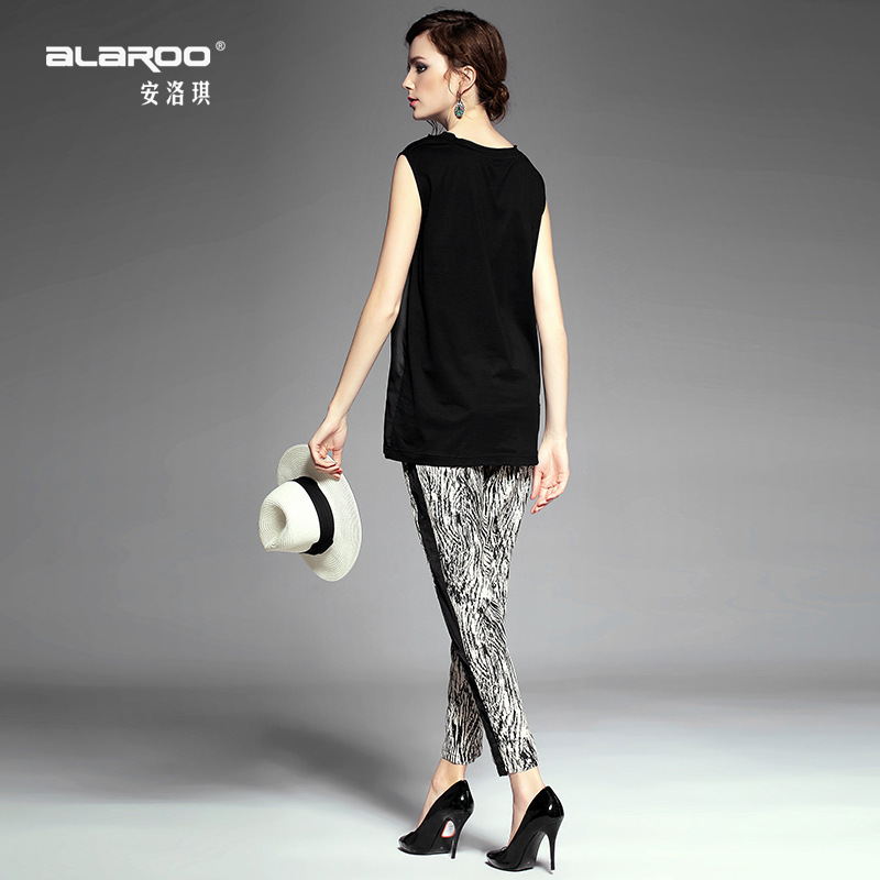 > 2015夏季新款 无袖圆领中长款印花弹力棉品质T恤