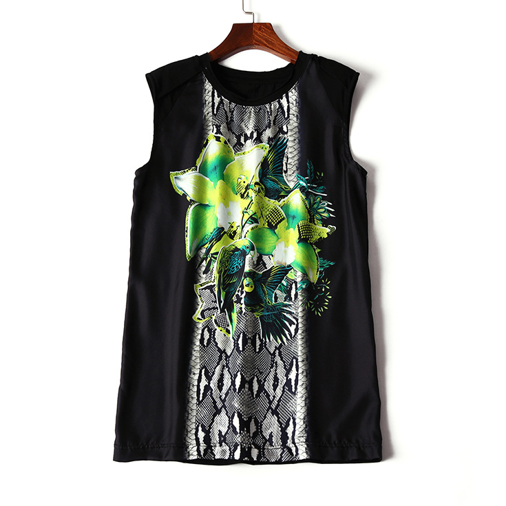 2015夏季新款 无袖圆领中长款印花弹力棉品质T恤