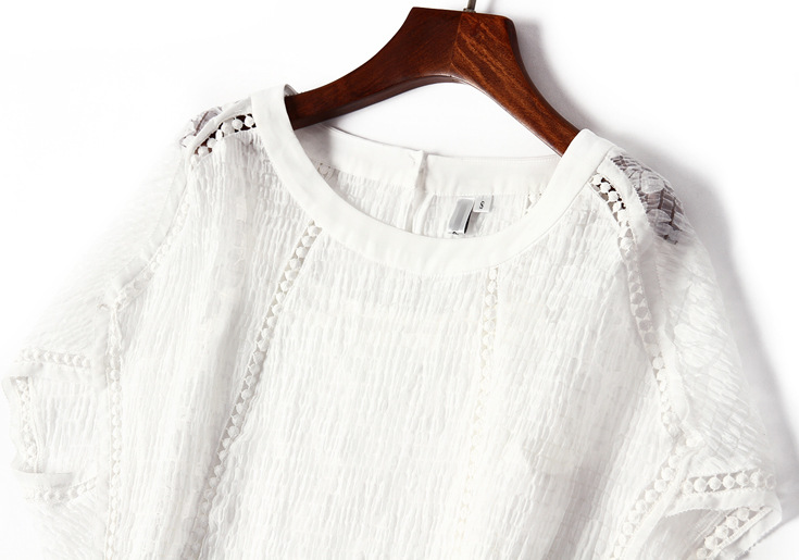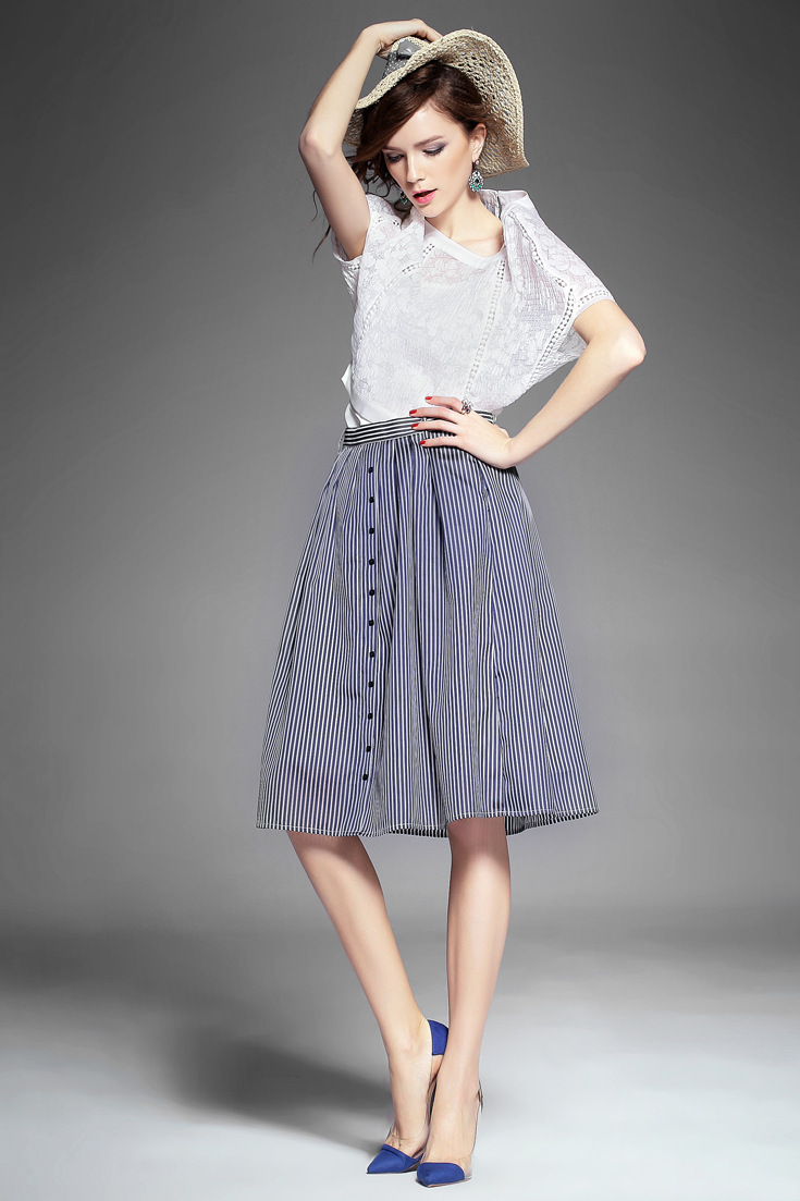 2015夏 圆领水溶绣花钉钻纯色上衣+弹力修身印花蓬蓬半裙套装