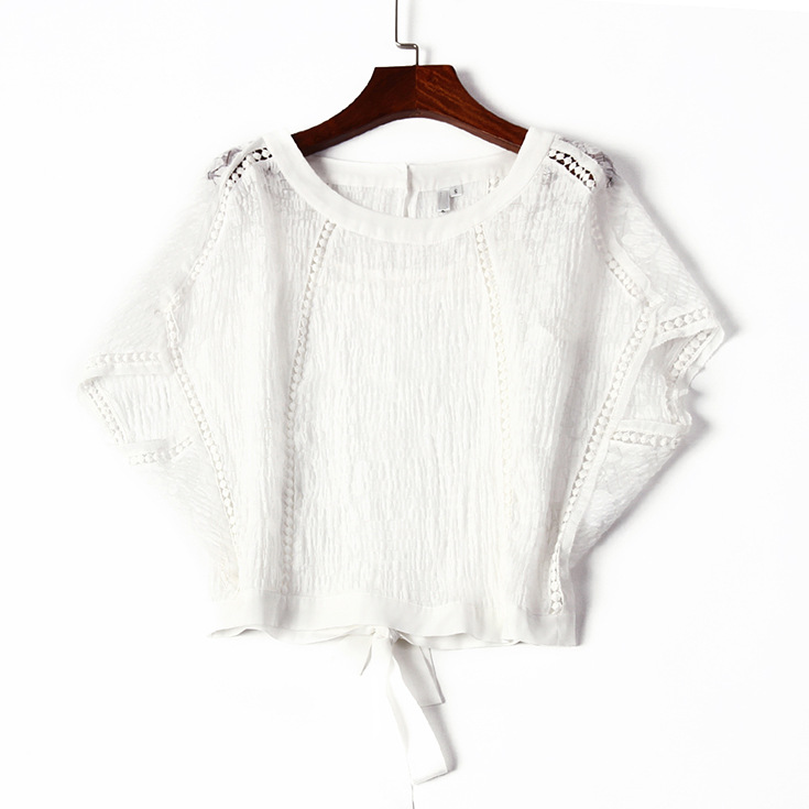 > 2015夏新品 蝙蝠袖系带烧花短上衣+竖条纹修身半裙三件套女送吊带