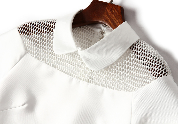 2015夏季新款 甜美娃娃领网眼镂空短上衣+斜纹印花半裙套装