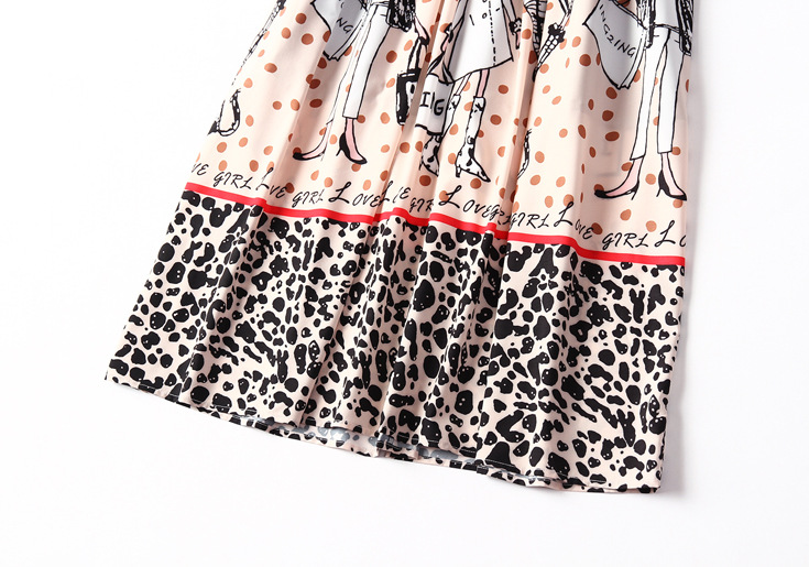 2015春夏季新款欧美风印花真丝连衣裙七分袖衬衣领时尚A字裙