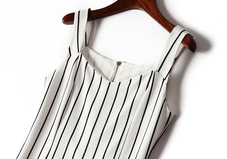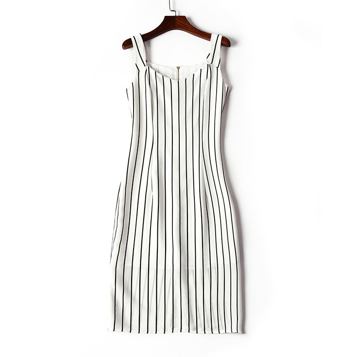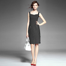 > 2015夏季女装新款 时尚方领无袖条纹OL通勤修身显瘦一步裙