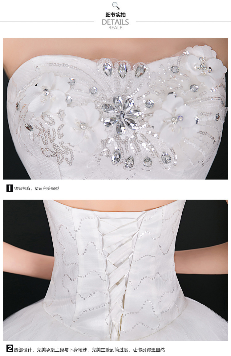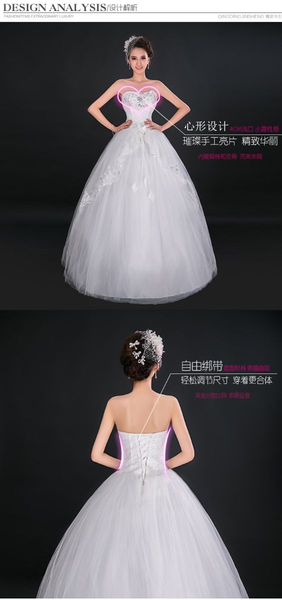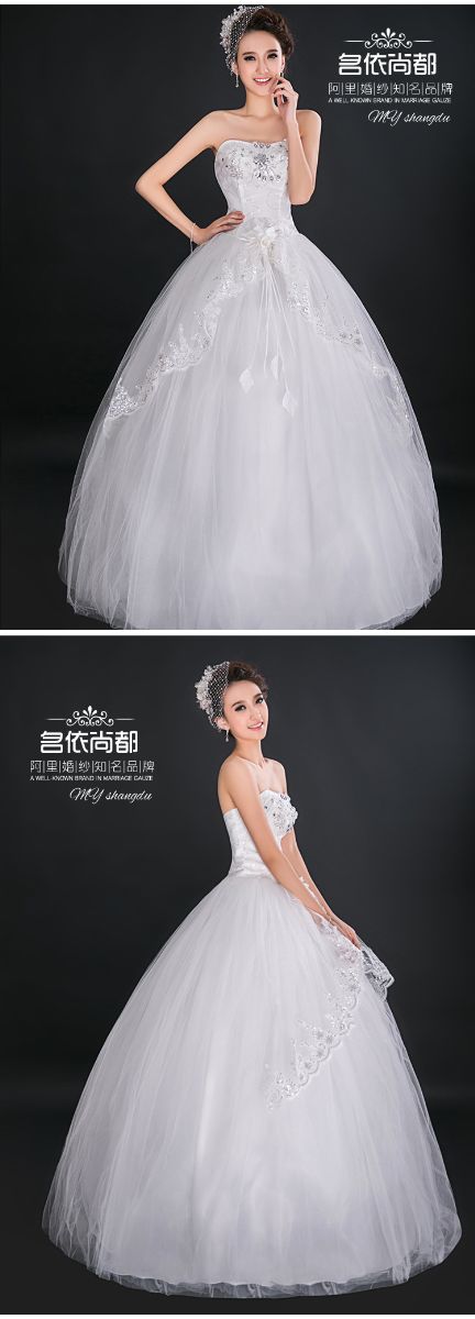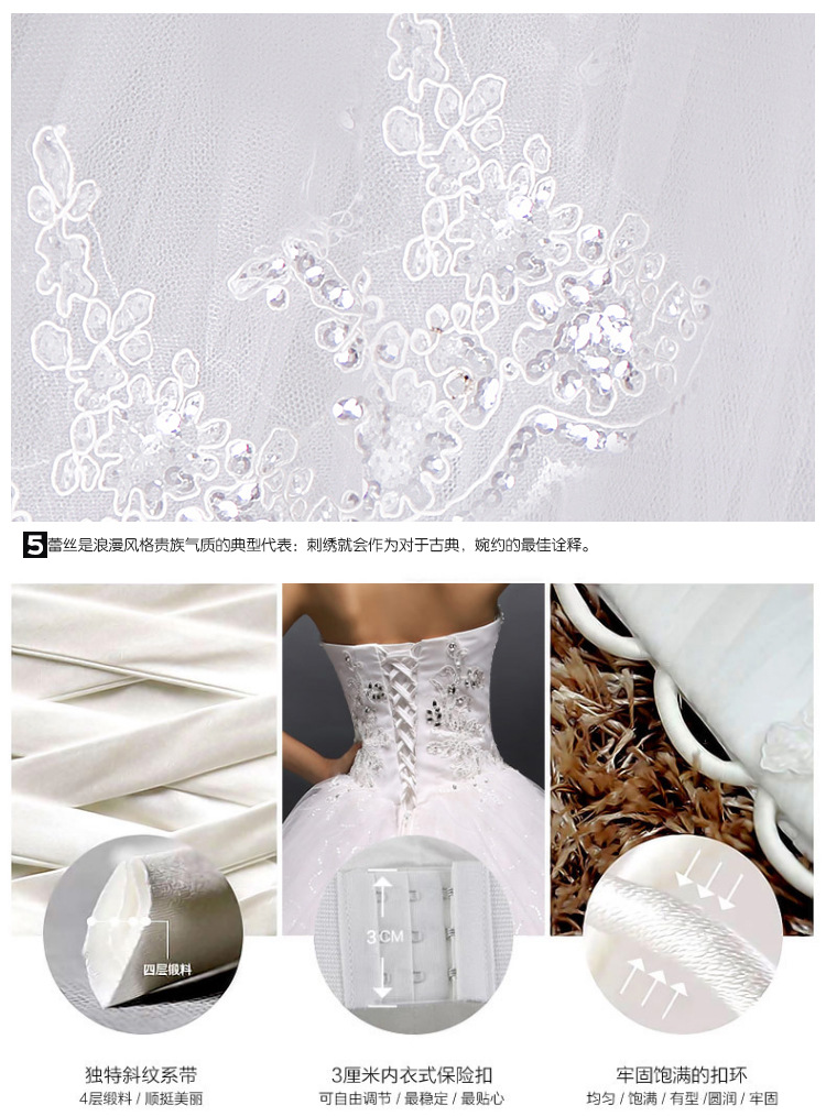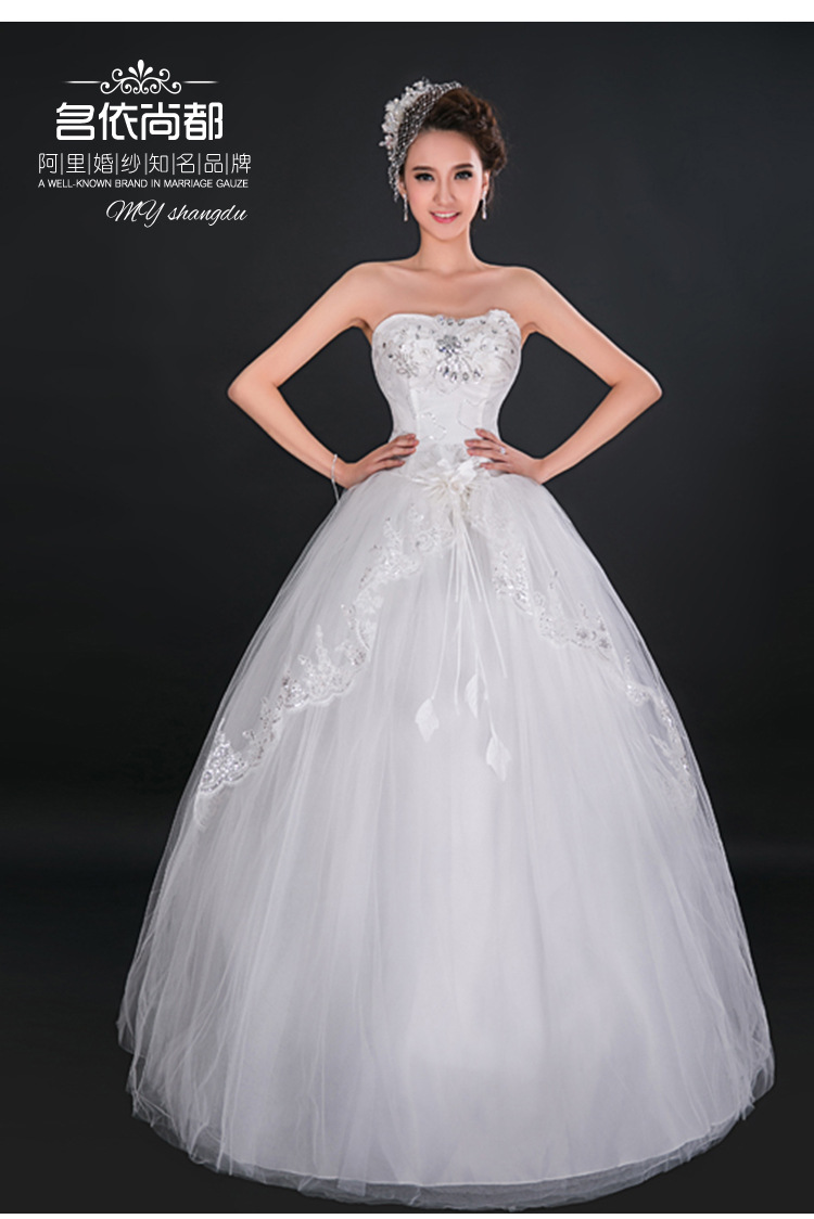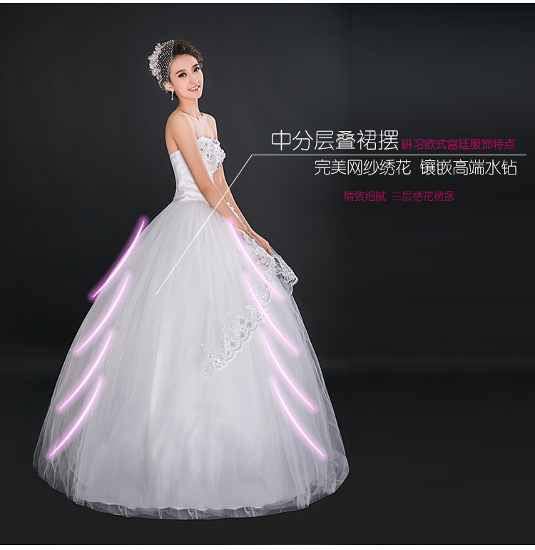 > 高档新娘抹胸齐地外贸婚纱蕾丝花边结婚礼服
