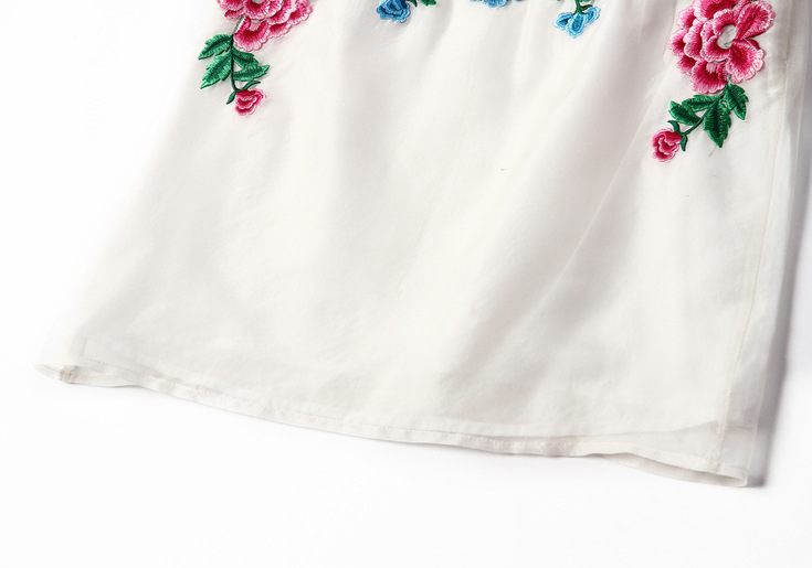 2015欧美风春季仙女裙气质新款刺绣网纱连衣裙七分袖大摆裙