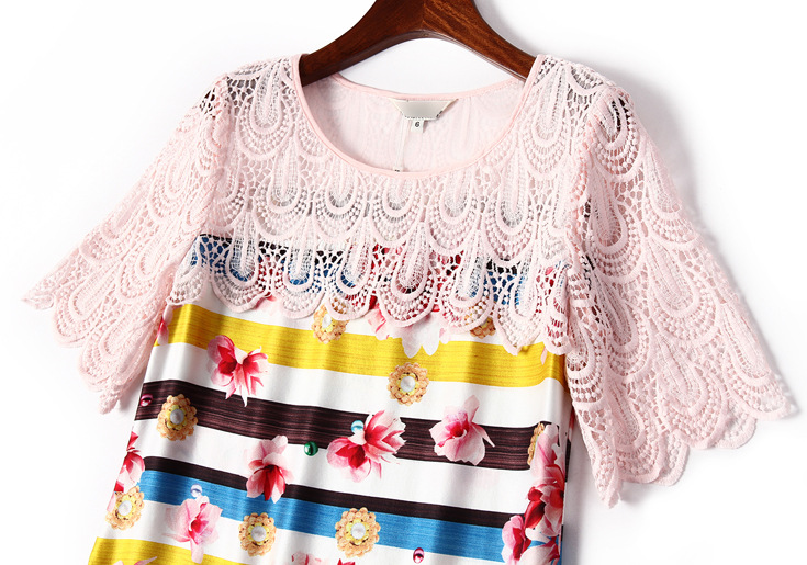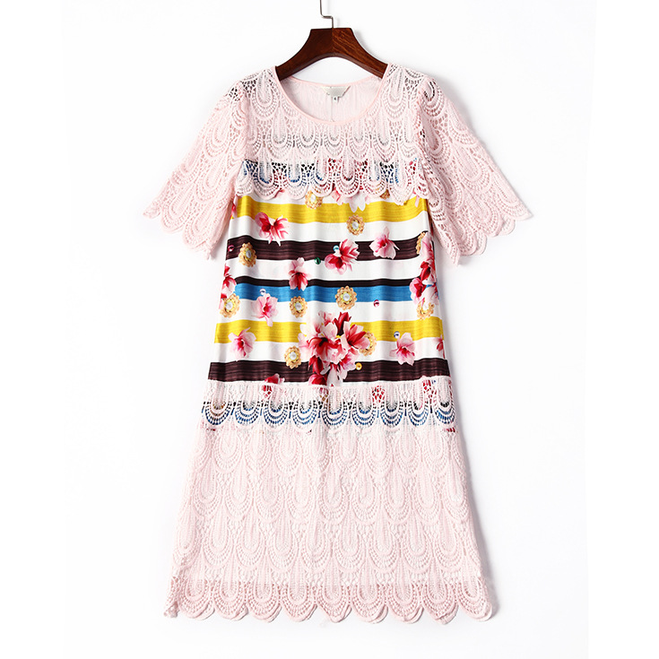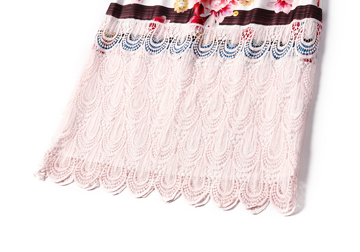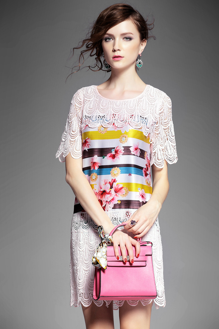 > 2015夏季新款 欧美高端水溶绣花拼接印花条纹撞色气质修身一步裙