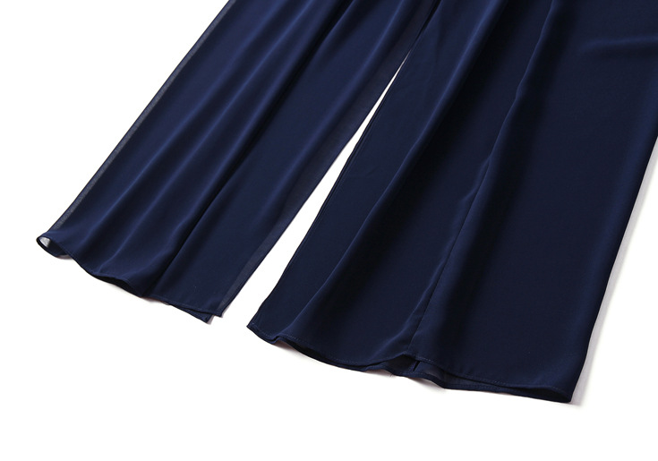 2015夏季女装 欧美纯色性感透视露背下摆开叉无袖修身雪纺长裙