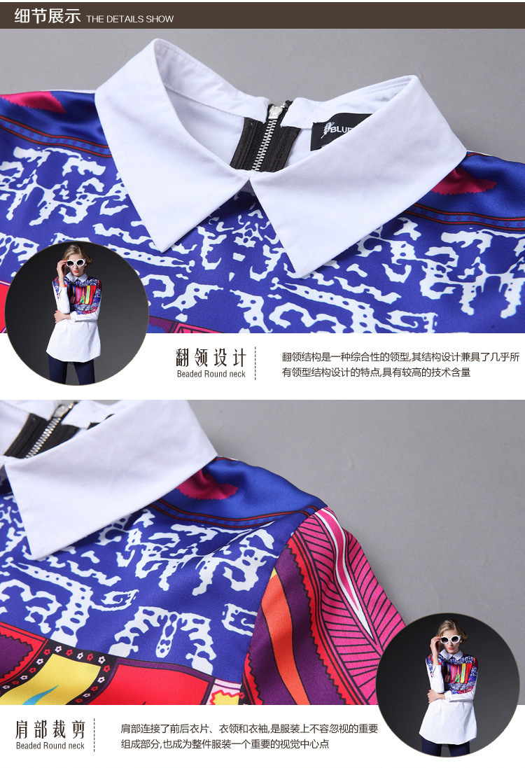 2015春夏新款真丝雪纺衫桑蚕丝印花七分袖长款真丝上衣衬衣