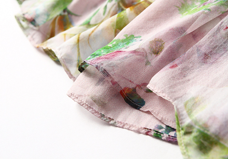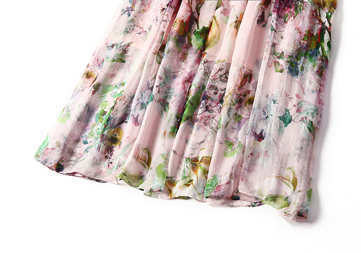 2015春夏新款欧美风印花高档桑蚕丝七分袖A字裙真丝连衣裙