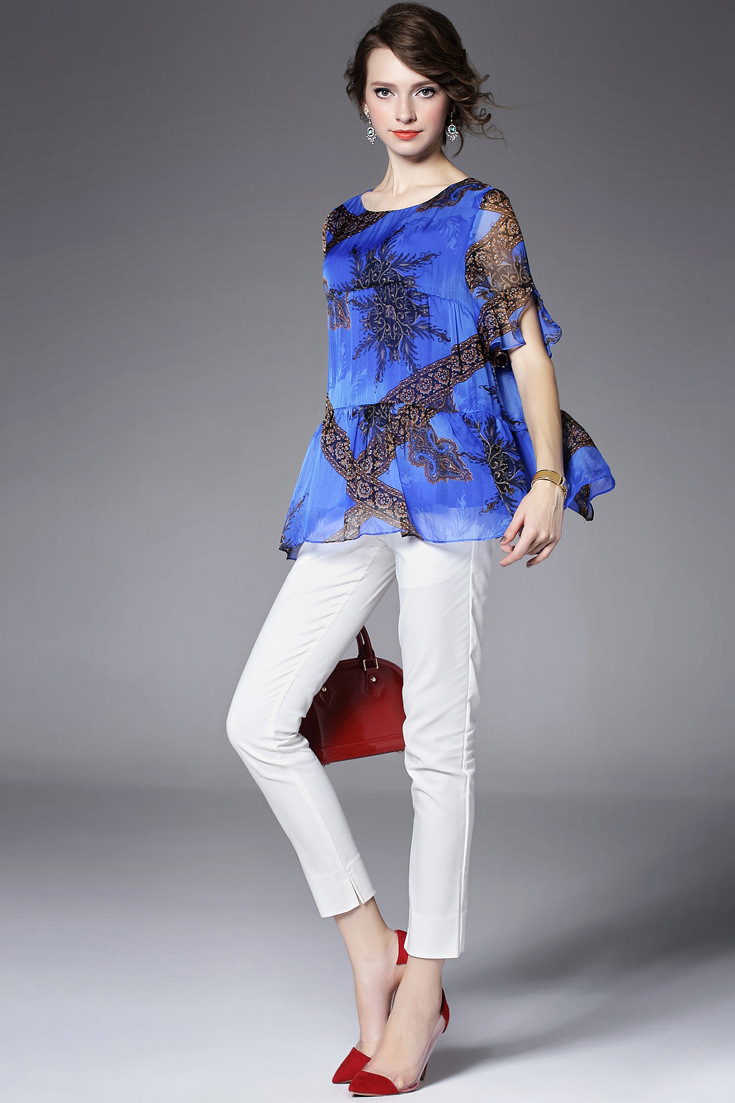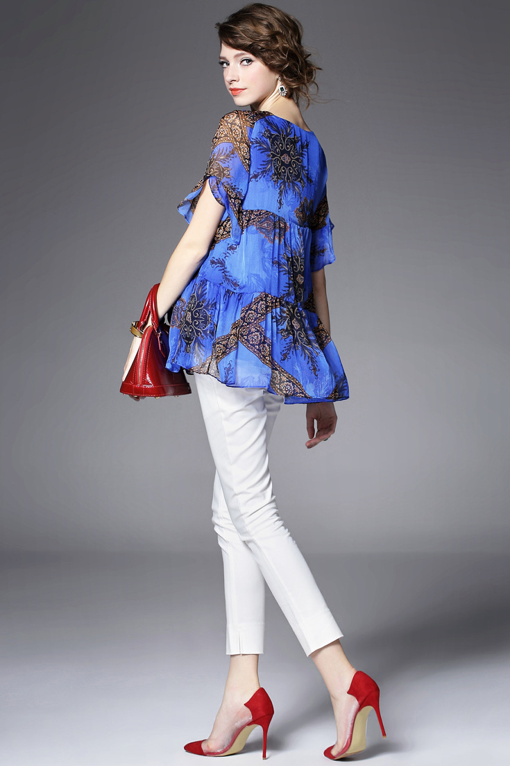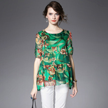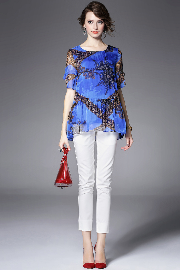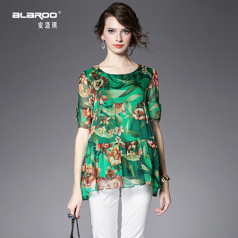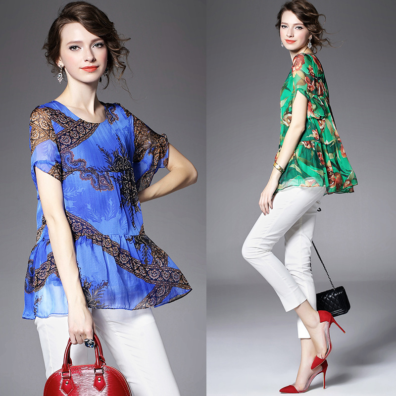 > 2015夏季新款 时尚圆领短袖复古印花宽松套头女上衣精品