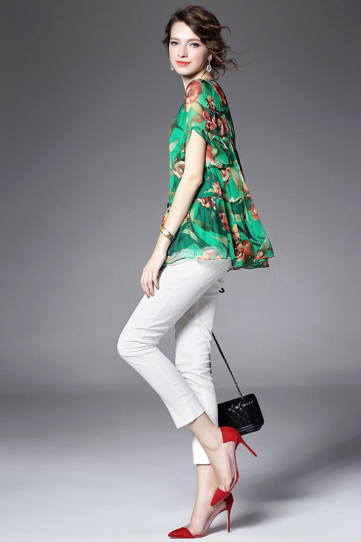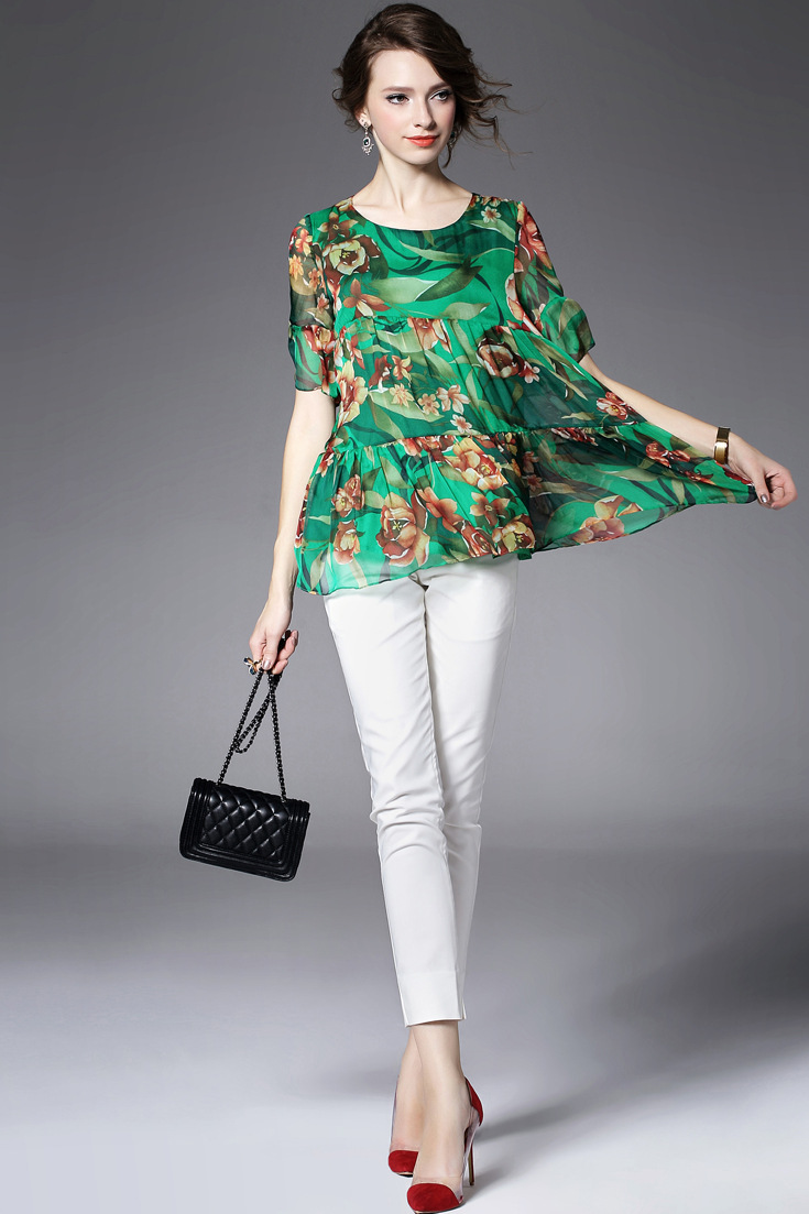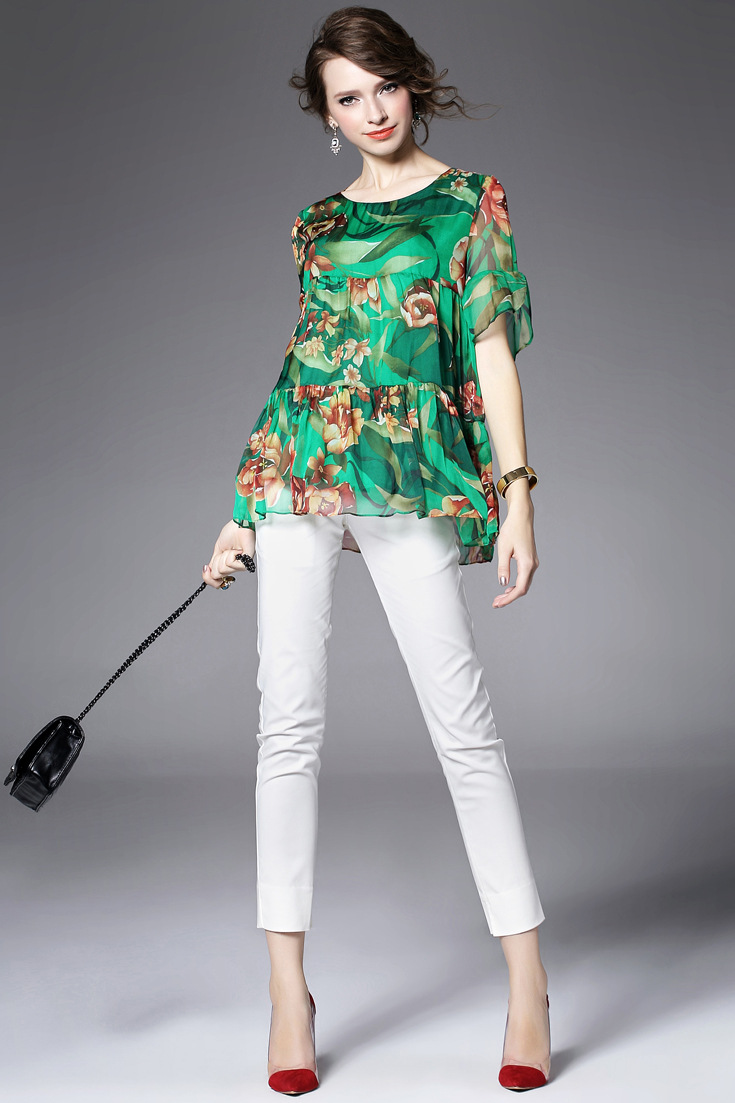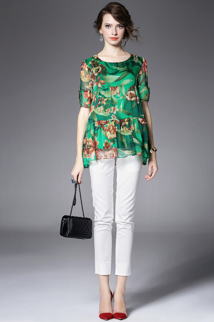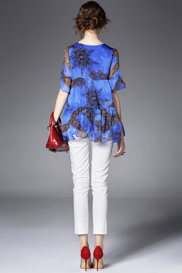 > 2015夏季新款 时尚圆领短袖复古印花宽松套头女上衣精品