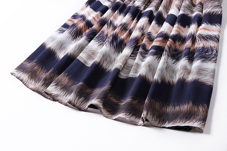 2015春夏新款欧美风印花高档桑蚕丝七分袖A字裙真丝连衣裙