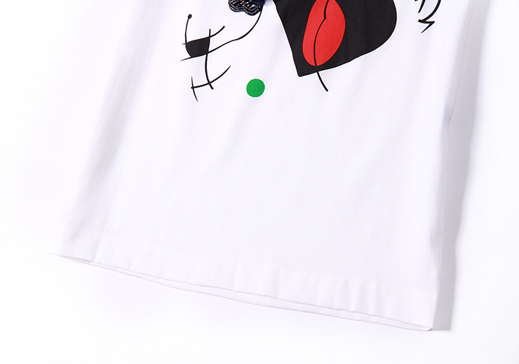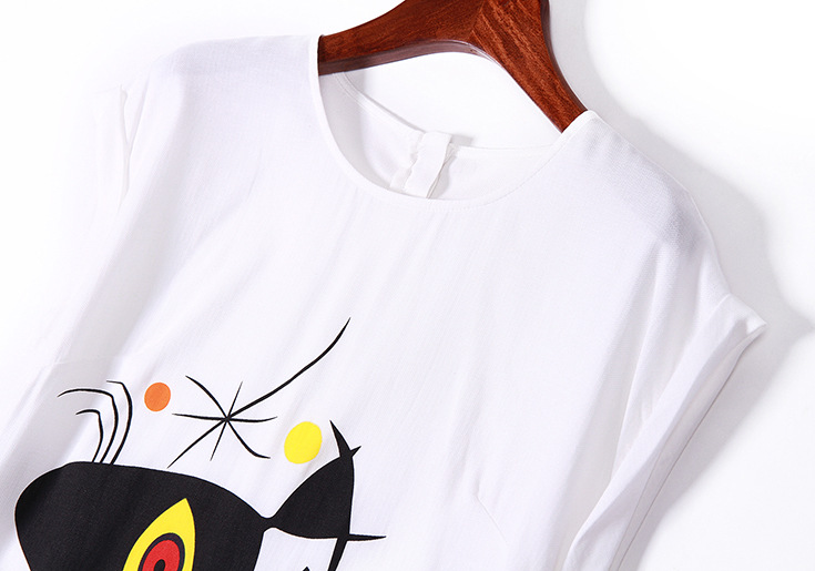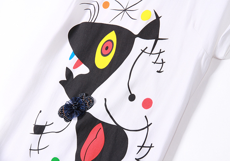 2015夏季新款女装欧美时尚圆领趣味印花拼贴钉珠蝴蝶结修身一步裙