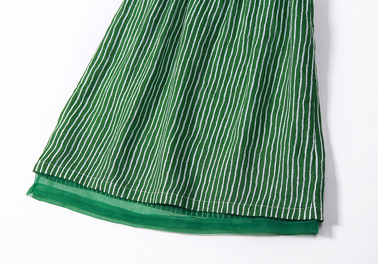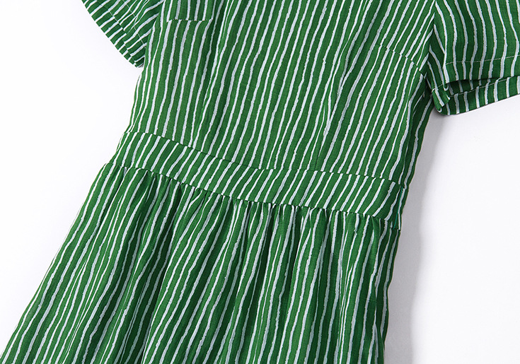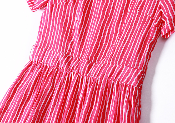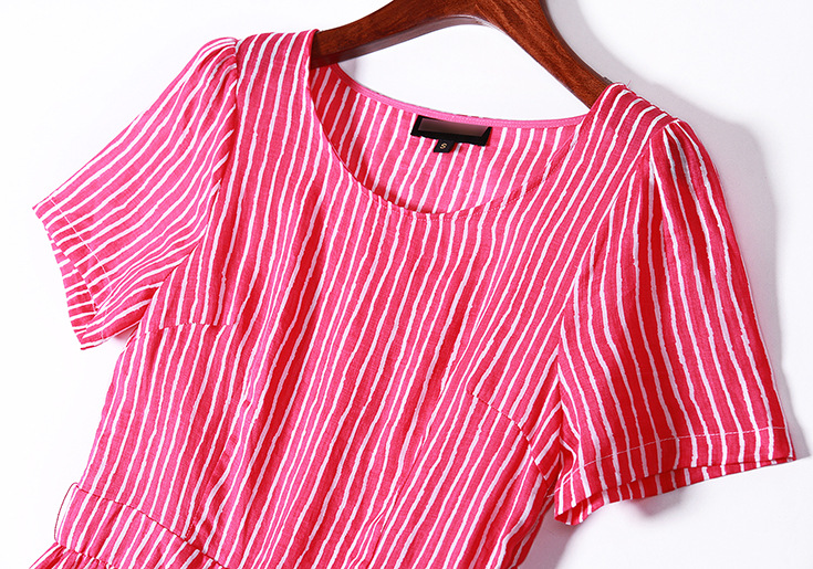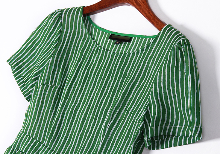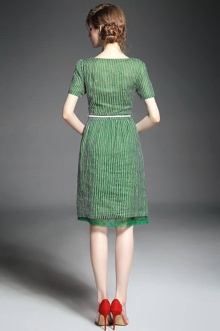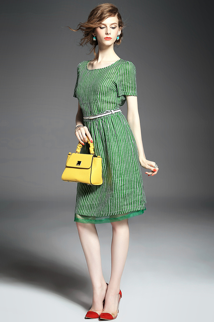 2015夏季新款气质淑女圆领竖条纹柯根纱拼接修身显瘦连衣裙送腰带