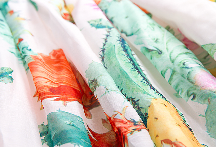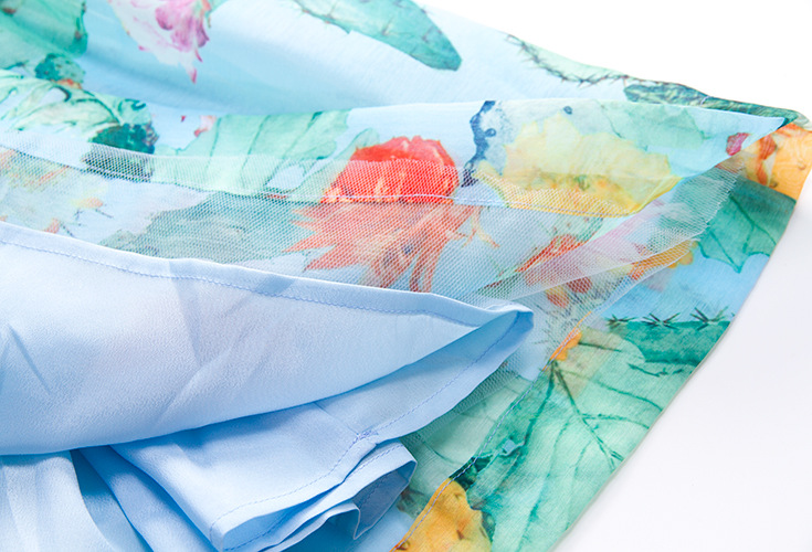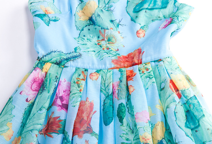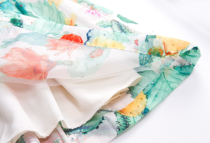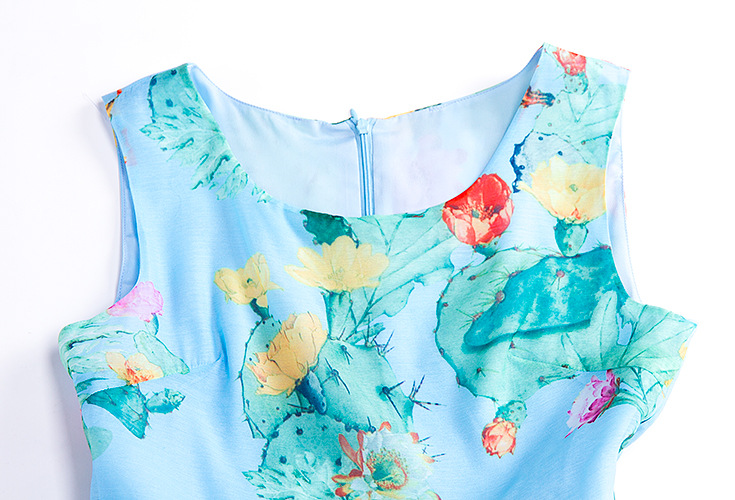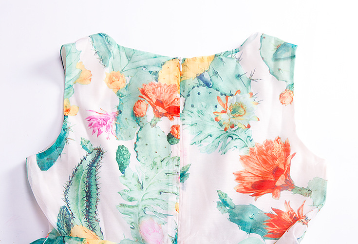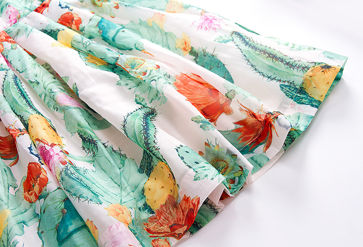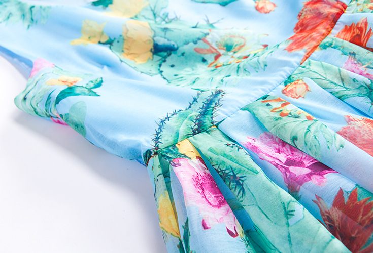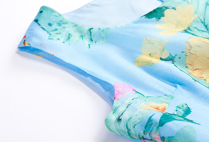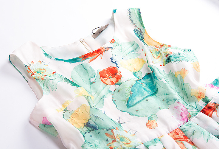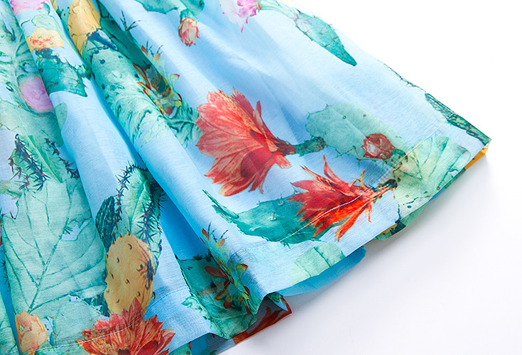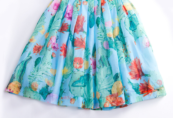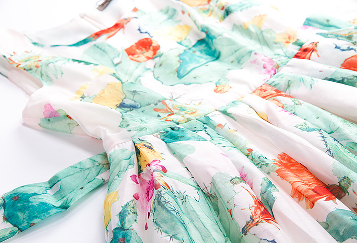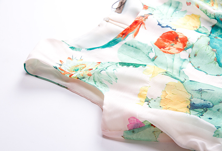 2015春夏新款欧美风印花高档桑蚕丝七分袖A字裙真丝连衣裙