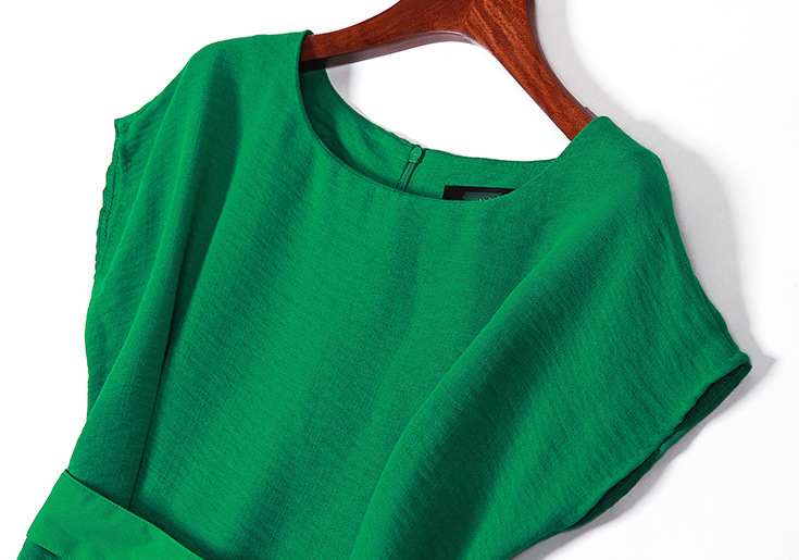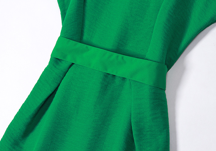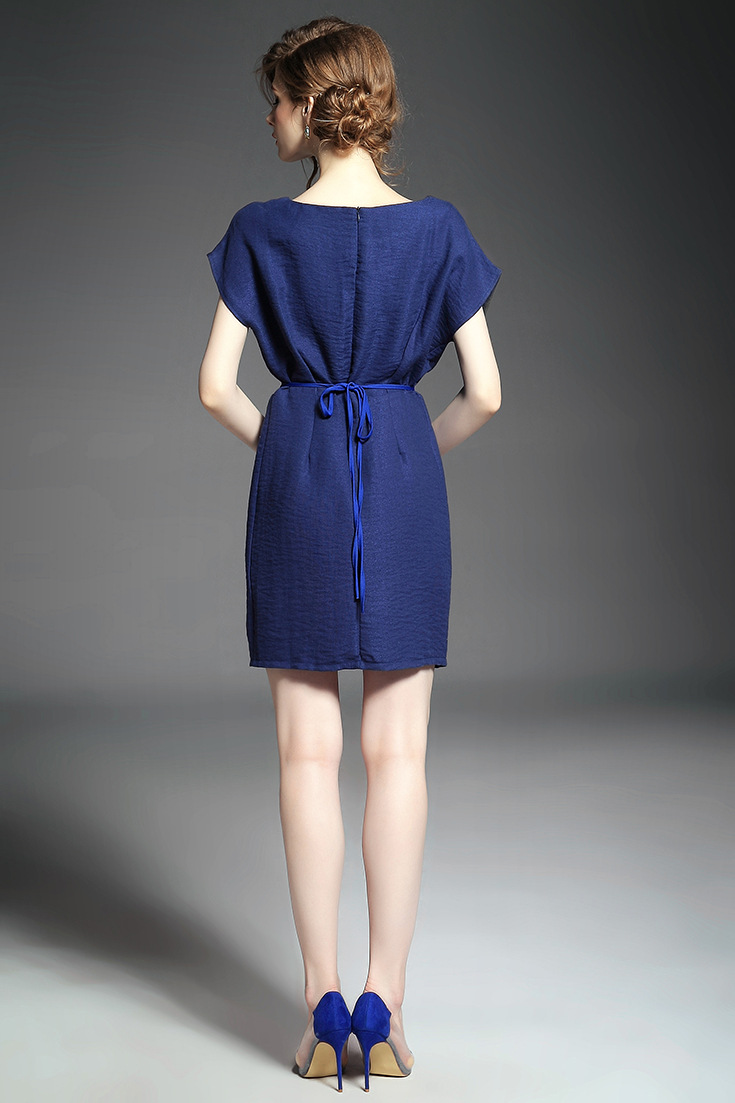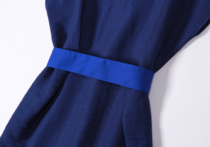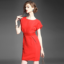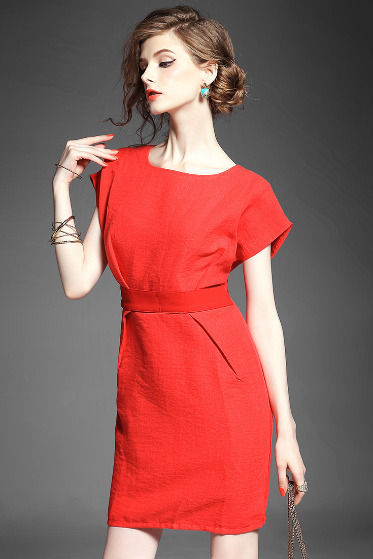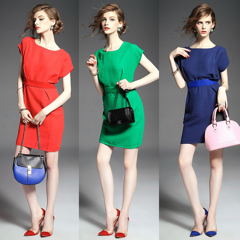 > 2015夏 时尚纯色蝙蝠袖收腰系带修身包臀一步裙棉麻连衣裙精品