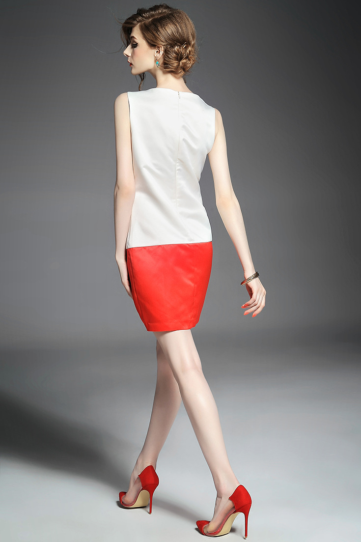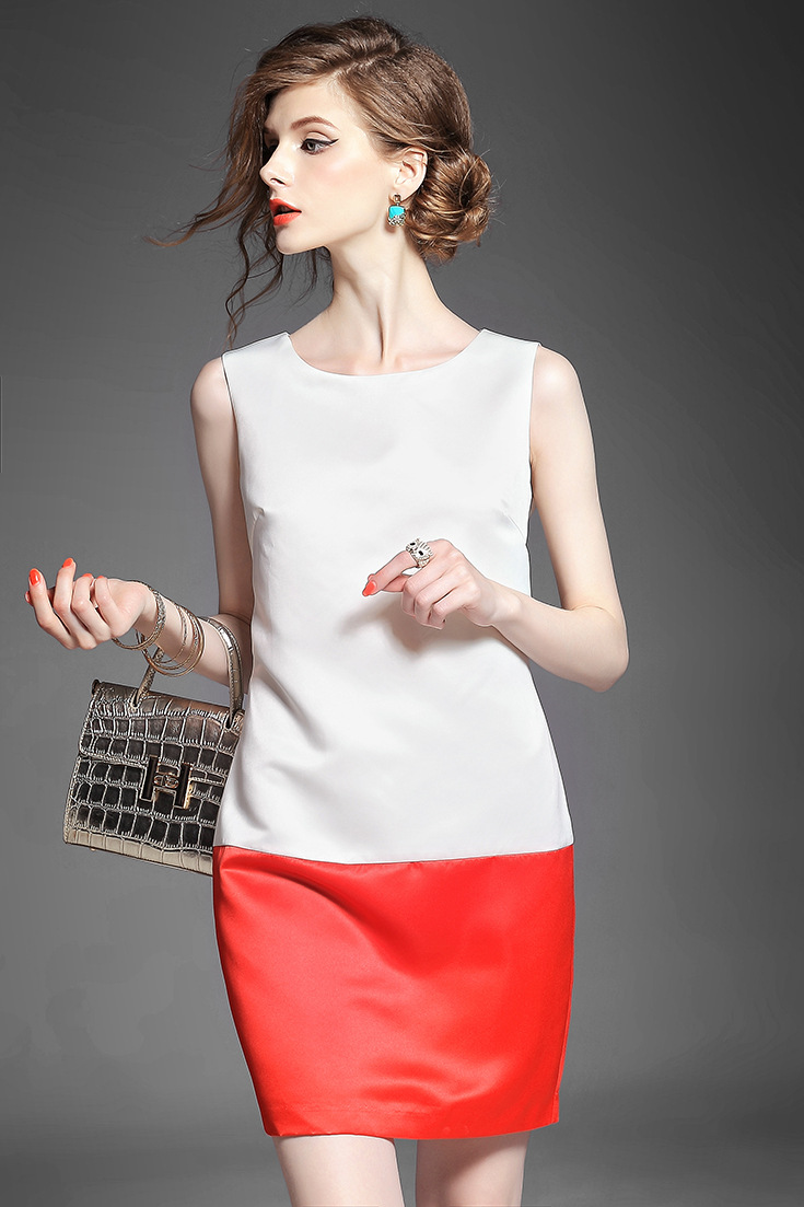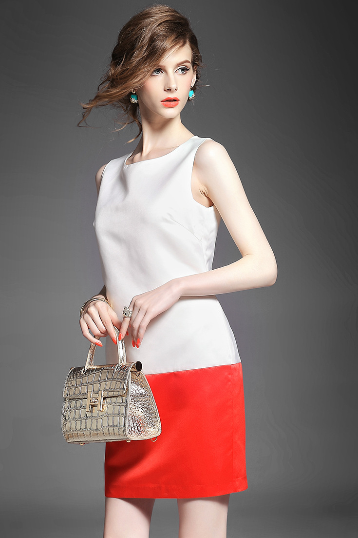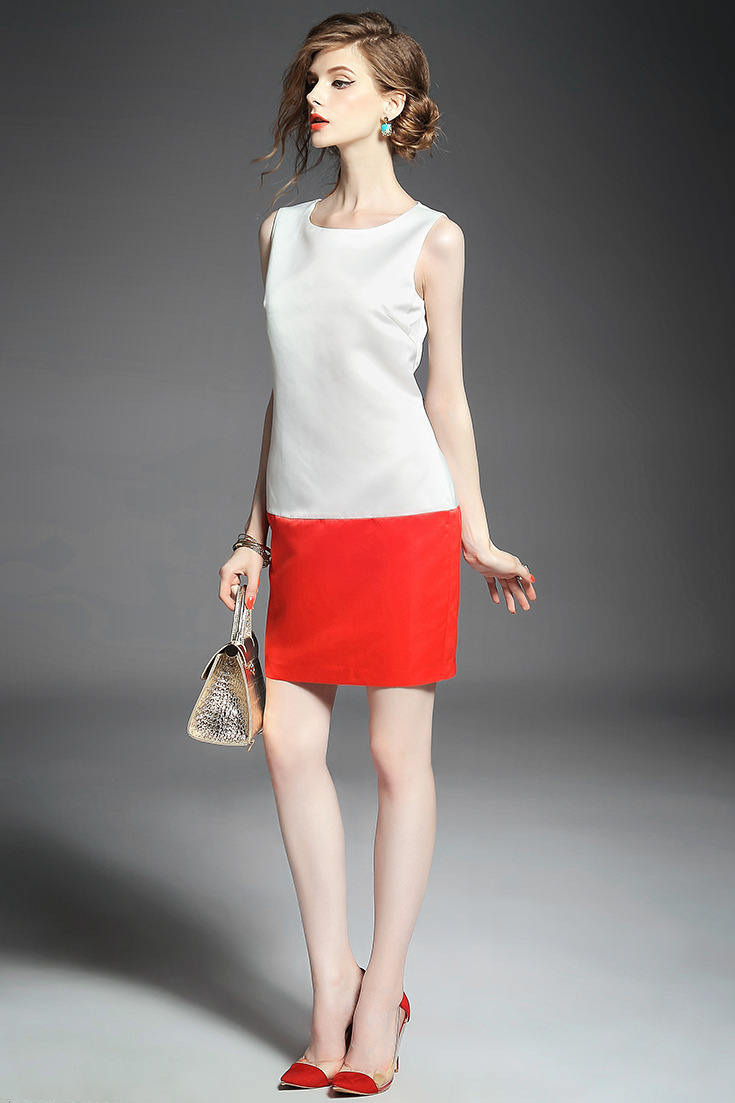 > 2015夏季女装 简约时尚圆领无袖撞色修身包臀一步裙连衣裙