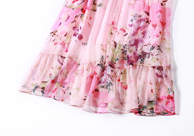 2015春夏新款欧美风印花高档桑蚕丝七分袖A字裙真丝连衣裙