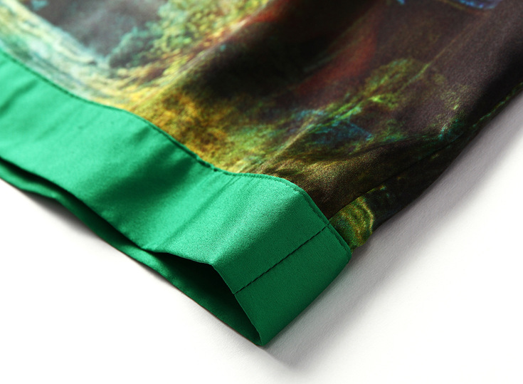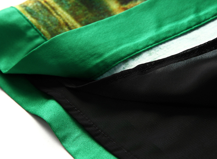 2015春夏新款欧美风印花高档桑蚕丝七分袖A字裙真丝连衣裙