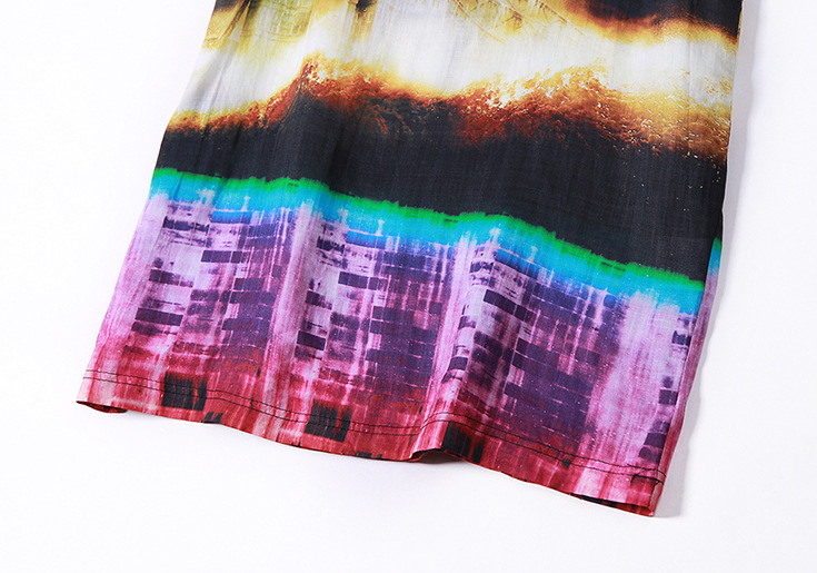 2015春夏新款欧美风印花高档桑蚕丝七分袖A字裙真丝连衣裙