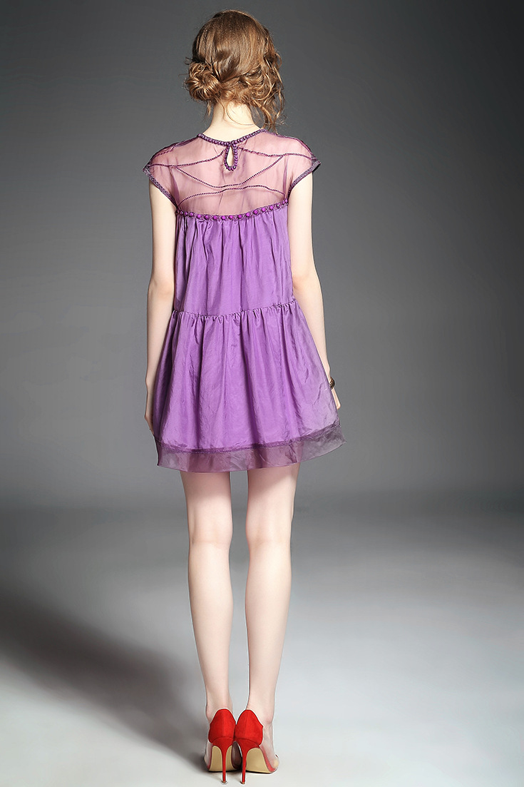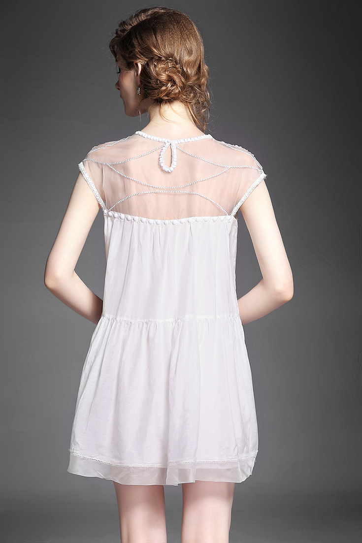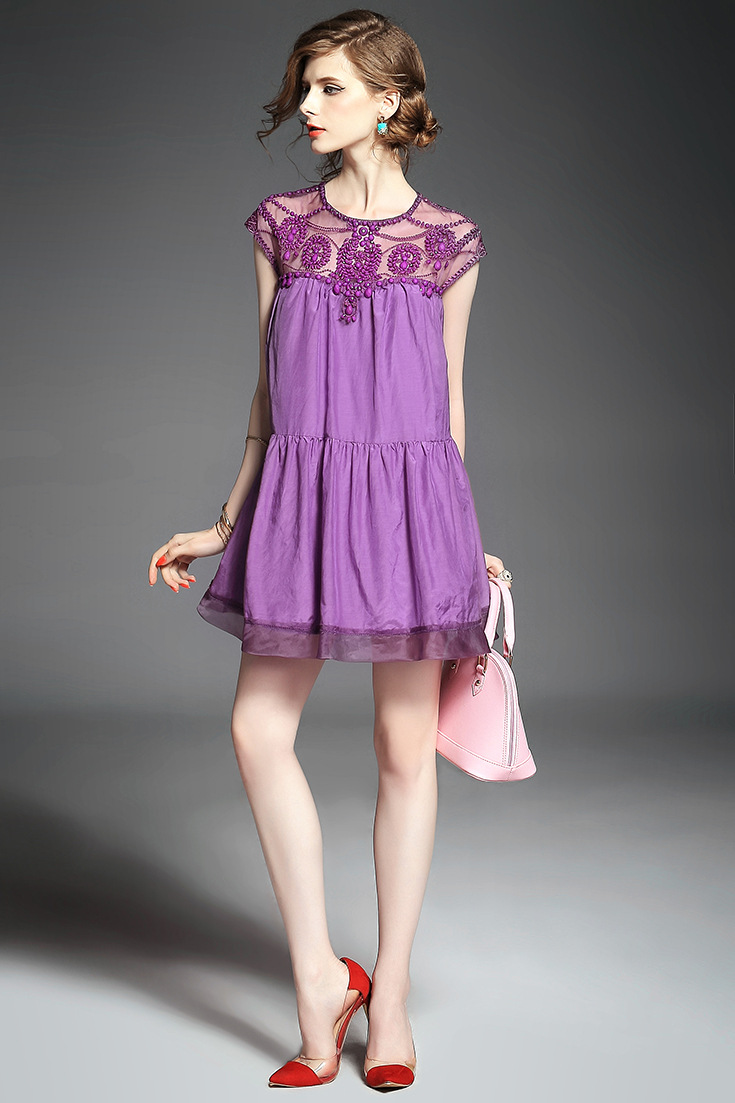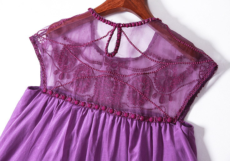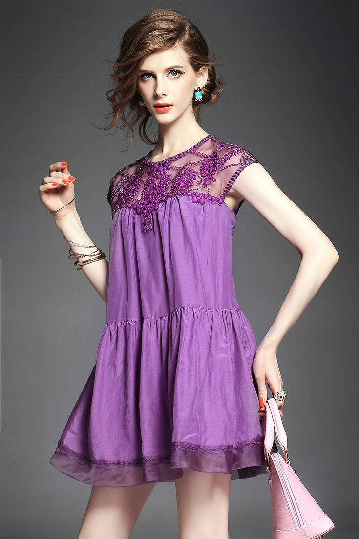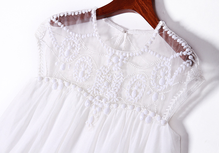 > 2015品牌女装夏季新款 名媛奢华钉珠重工绣花纯色气质无袖连衣裙