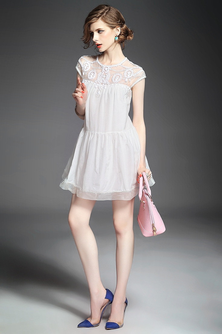2015欧美风春装新款女装连衣裙显瘦气质镂空修身A字裙