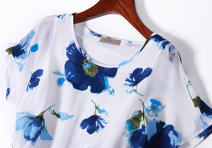 2015春夏新款欧美风印花高档桑蚕丝七分袖A字裙真丝连衣裙