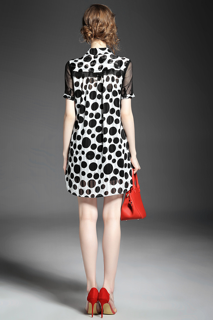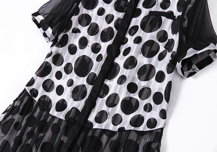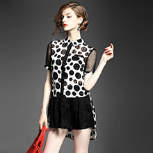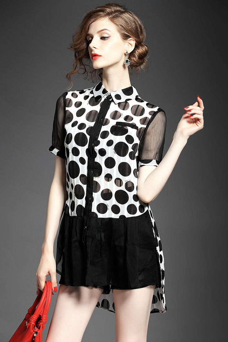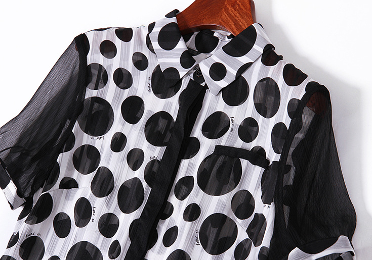 2015夏季女装新款 翻领气质圆点印花不规则中长款衬衣女