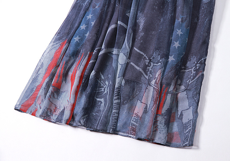 2015春夏新款欧美风印花高档桑蚕丝七分袖A字裙真丝连衣裙