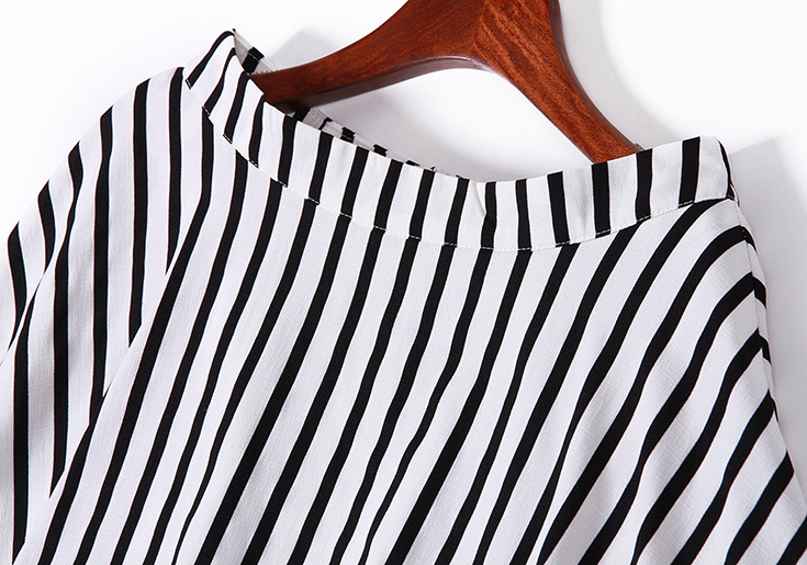 2015夏 欧美时尚不规则后背开叉真丝拼接条纹上衣+阔腿短裤套装