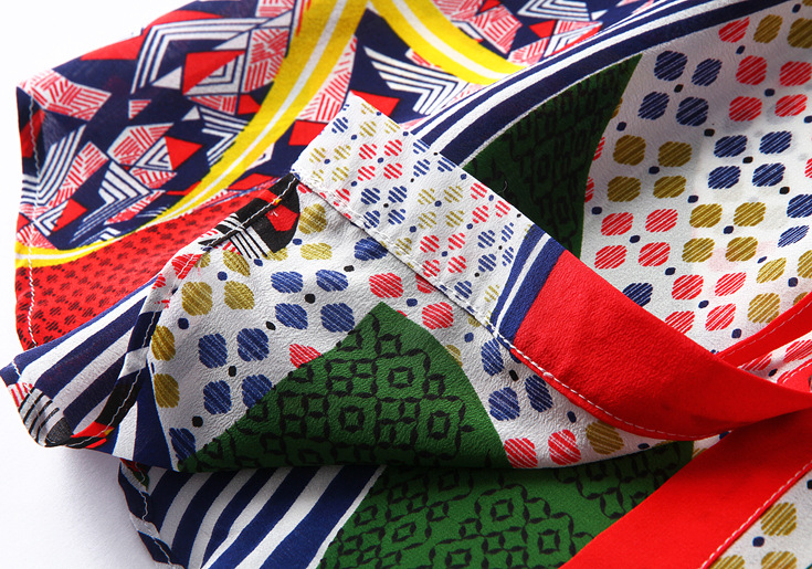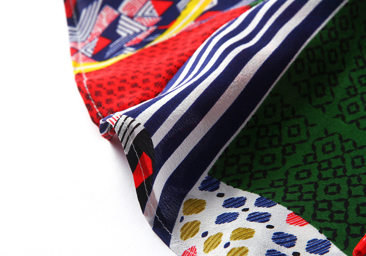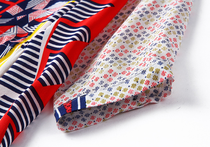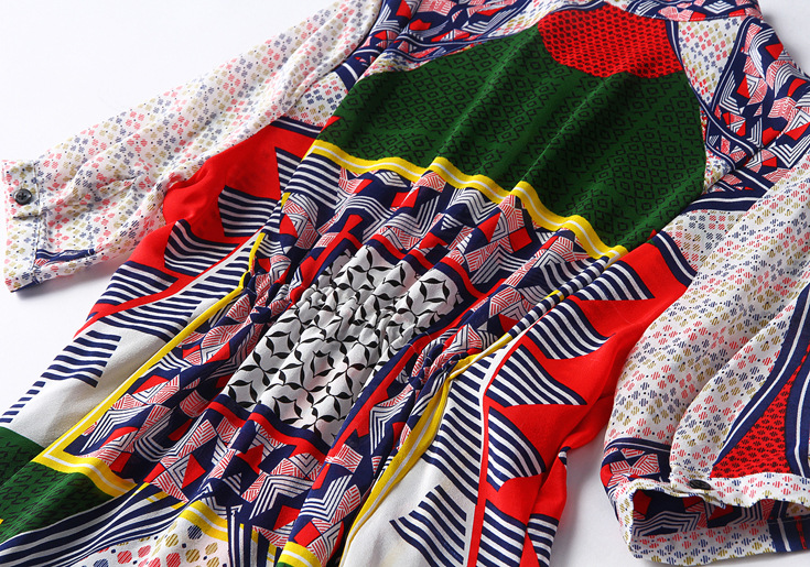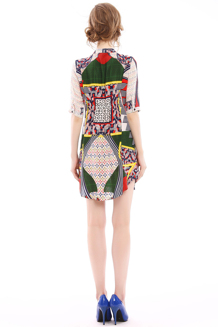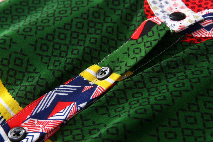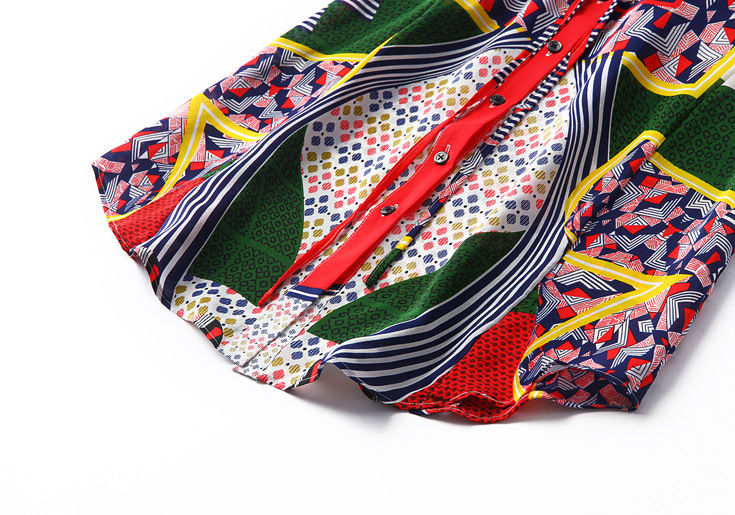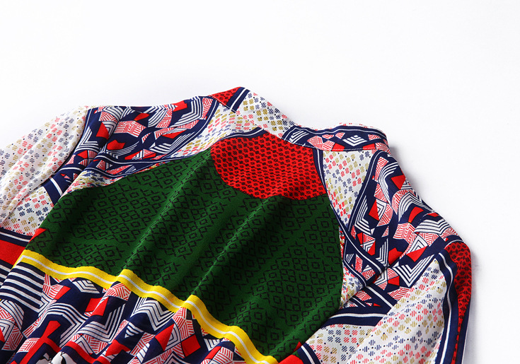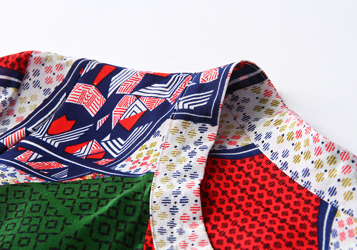 2015春夏季新款欧美风印花真丝连衣裙七分袖衬衣领时尚A字裙