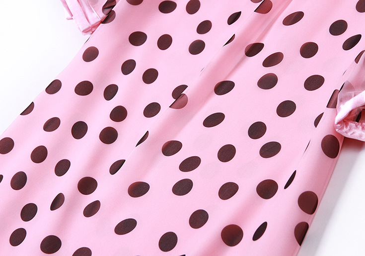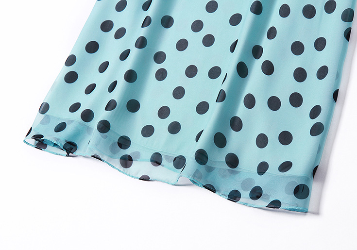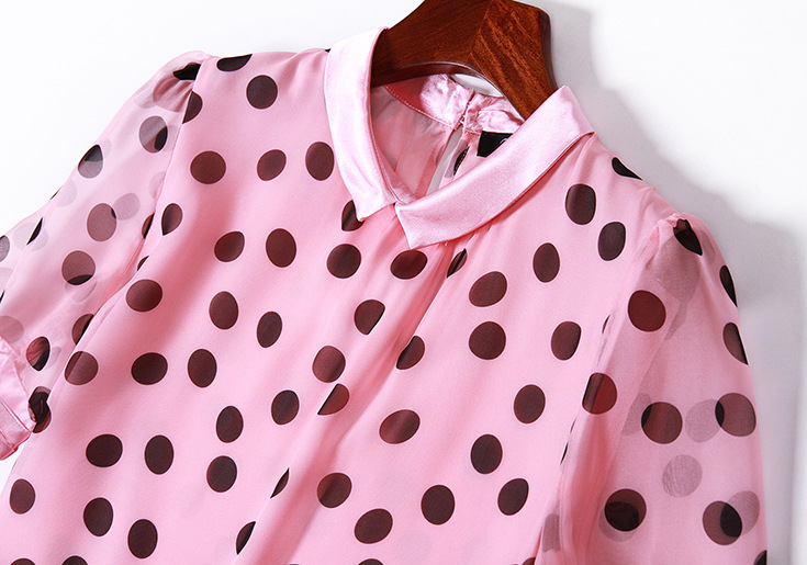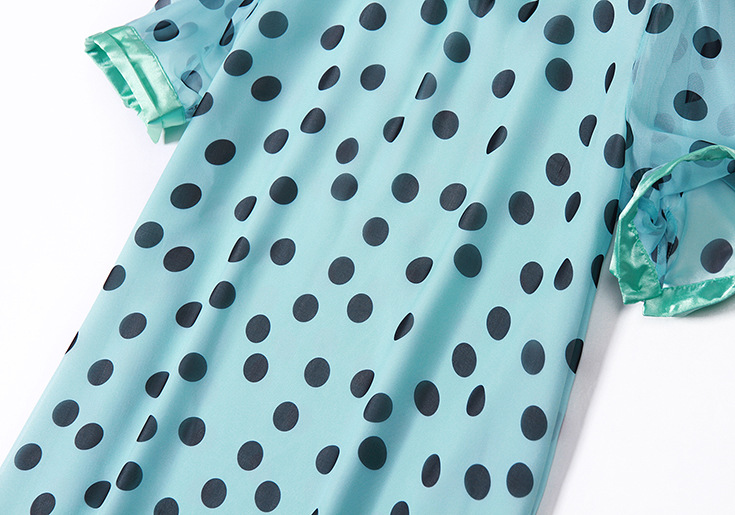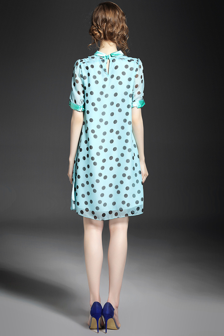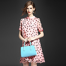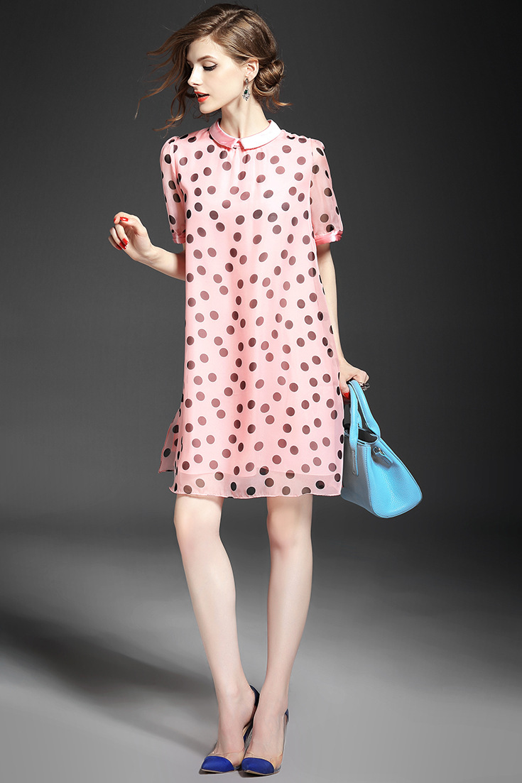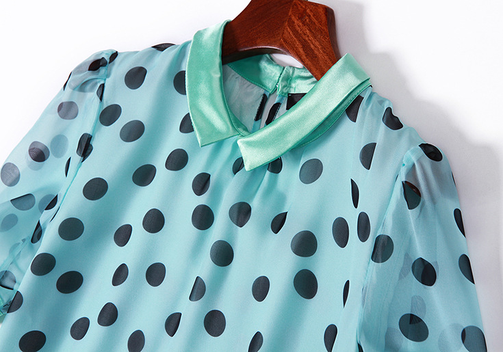 2015夏季女装 甜美气质小翻领波点印花宽松大摆连衣裙