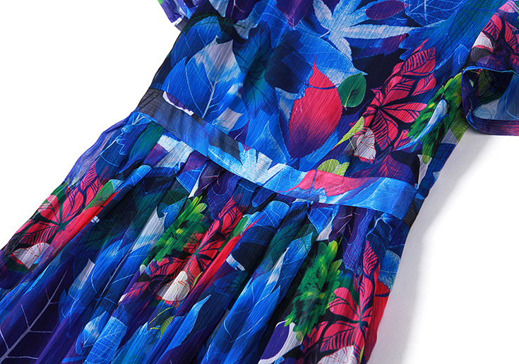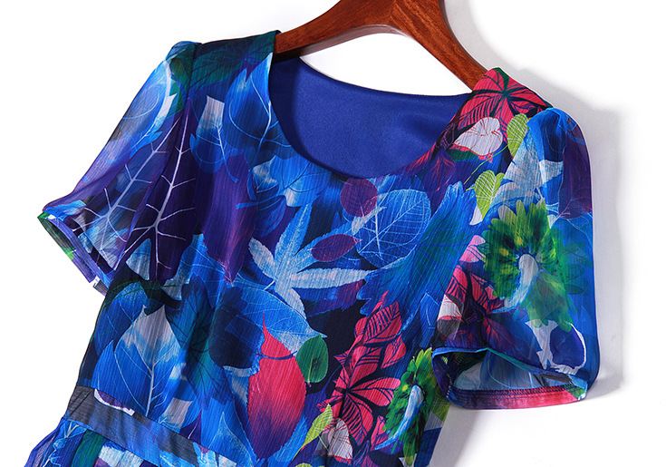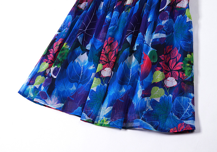 2015春夏新款欧美风印花高档桑蚕丝七分袖A字裙真丝连衣裙