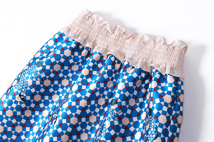 2015 欧美时尚圆领无袖拼接印花短上衣+压褶弹力收腰半身裙套装