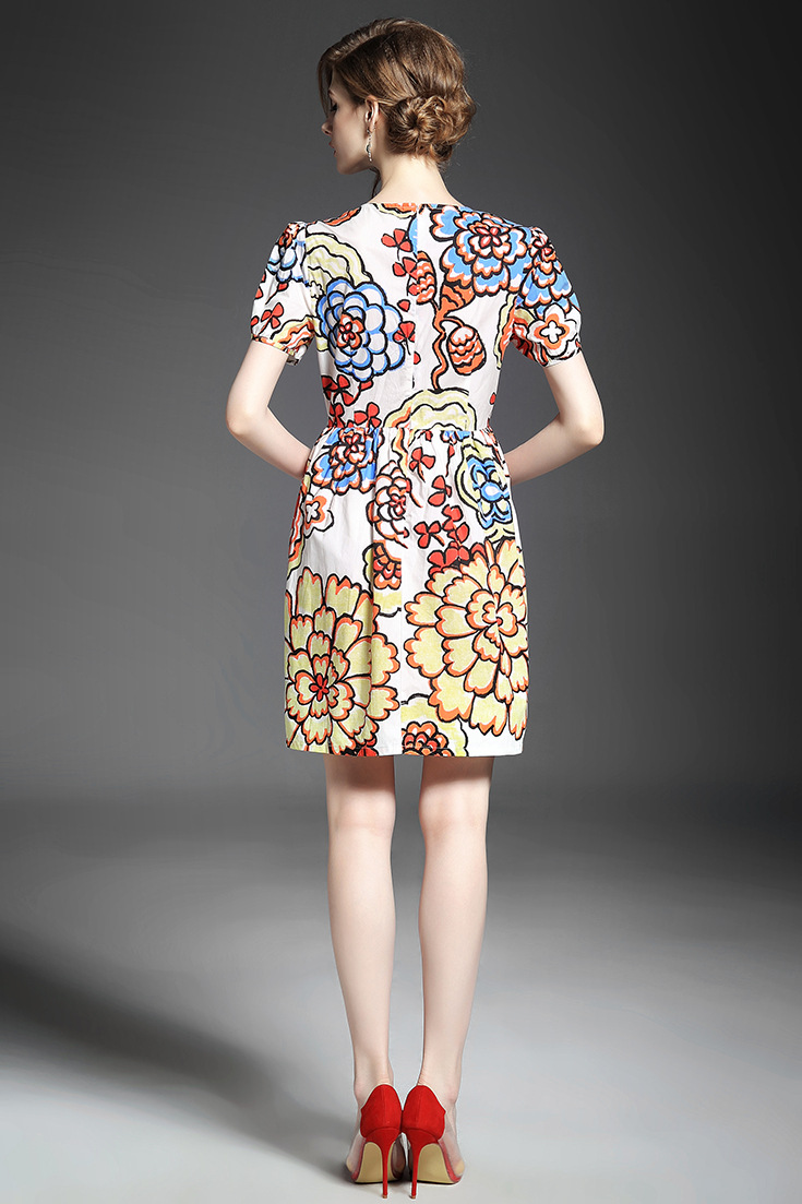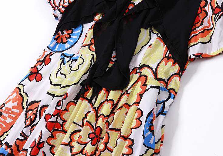 2015春夏新款欧美风印花高档桑蚕丝七分袖A字裙真丝连衣裙
