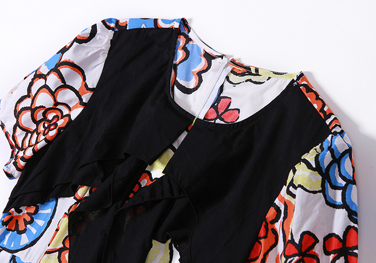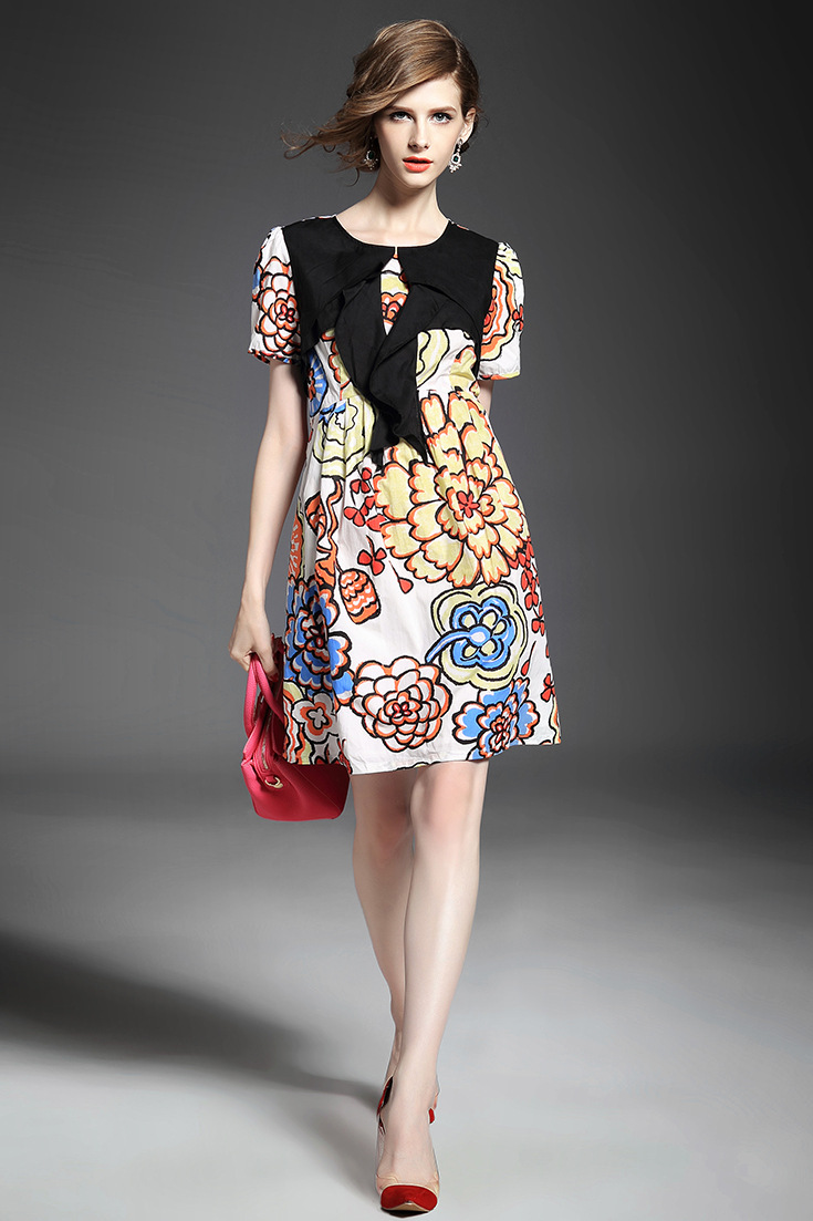 > 2015夏季新款 圆领个性拼接印花修身一步裙品牌连衣裙