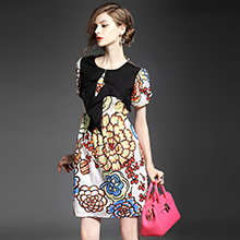 2015夏季新款 圆领个性拼接印花修身一步裙品牌连衣裙