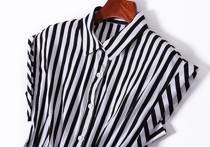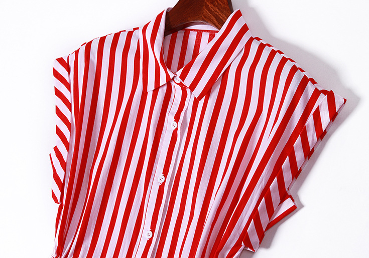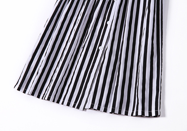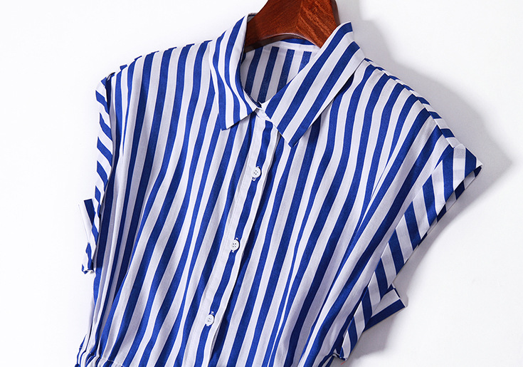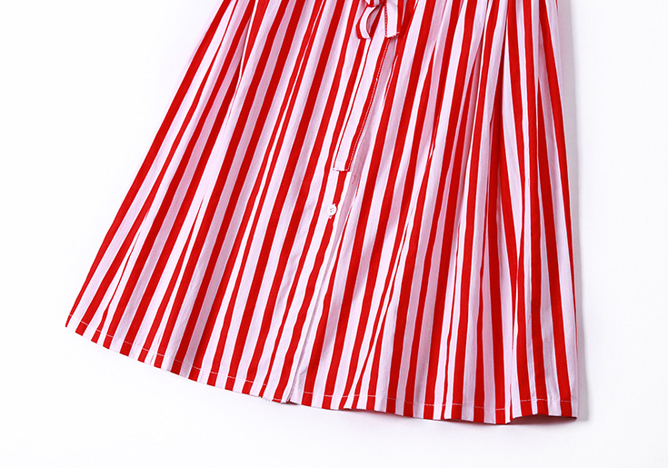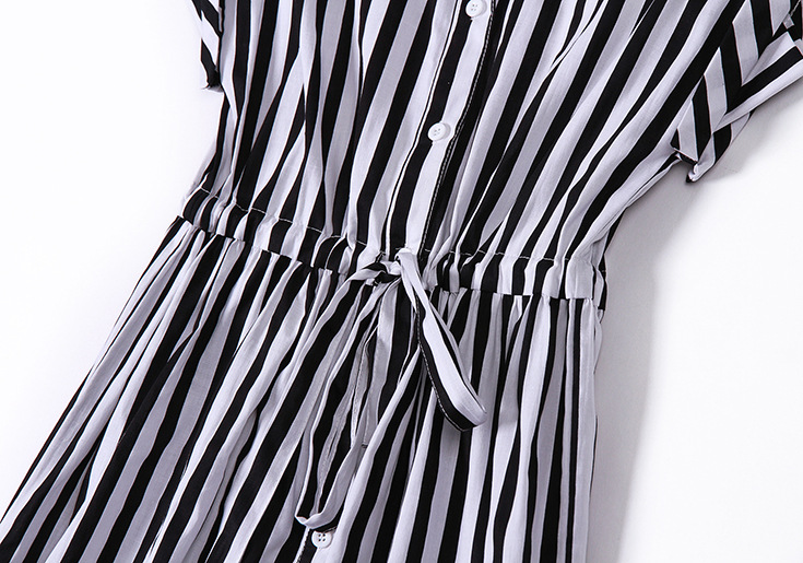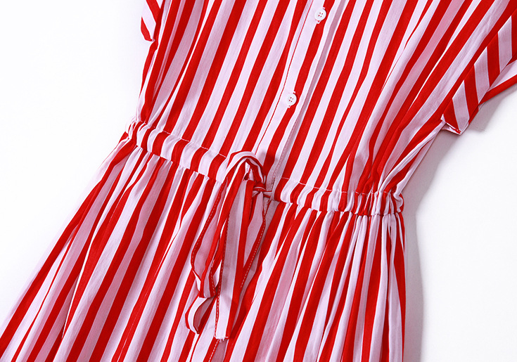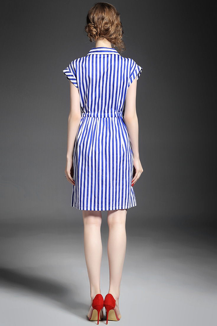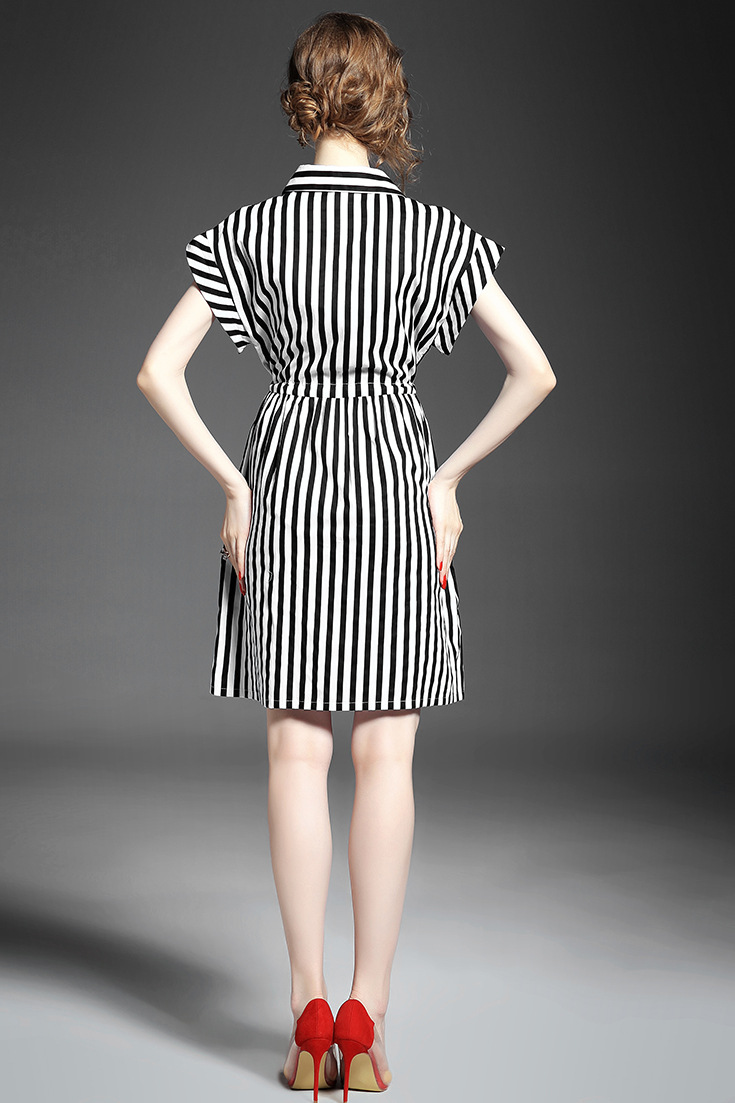 2015夏季新款 时尚翻领竖条纹显瘦修身系带连衣裙