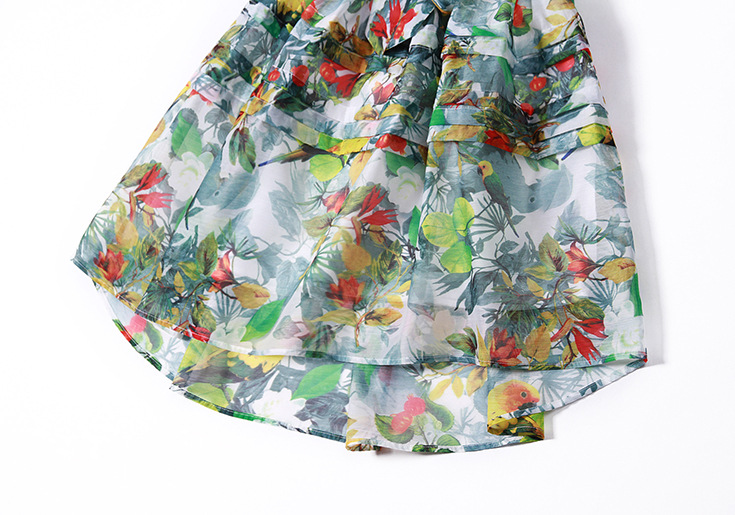 2015春夏新款欧美风印花高档桑蚕丝七分袖A字裙真丝连衣裙
