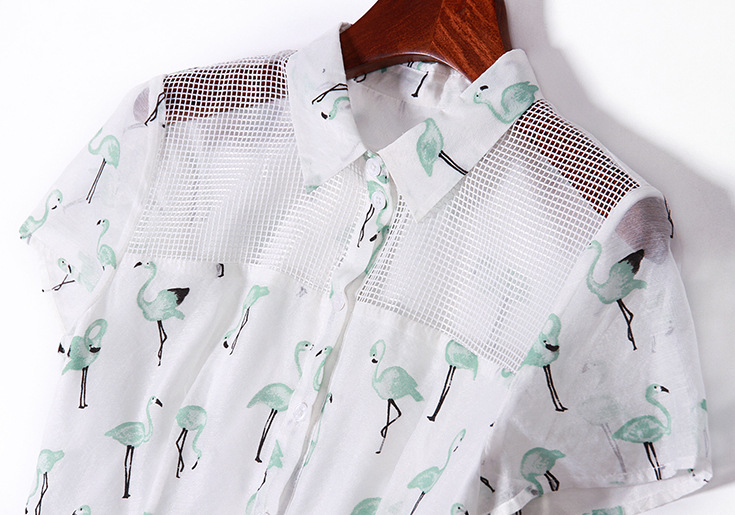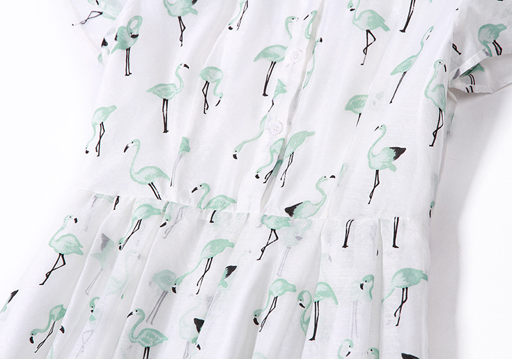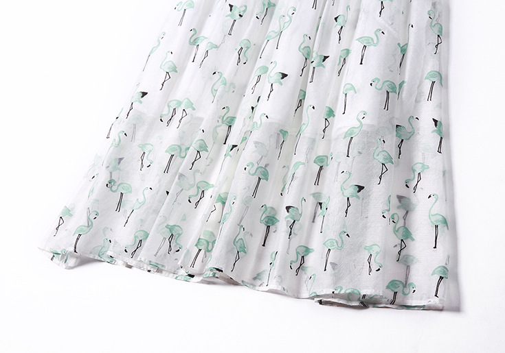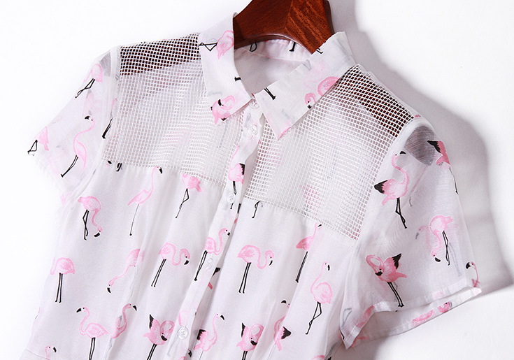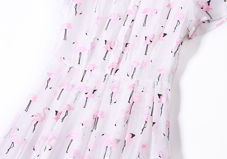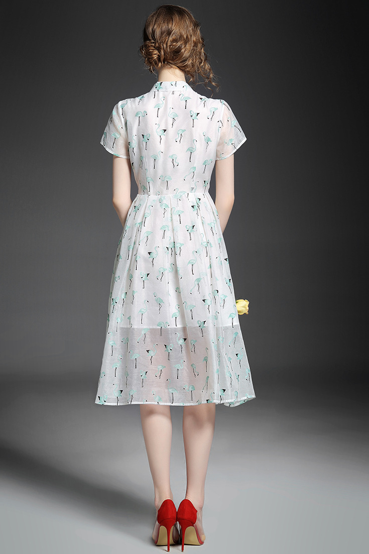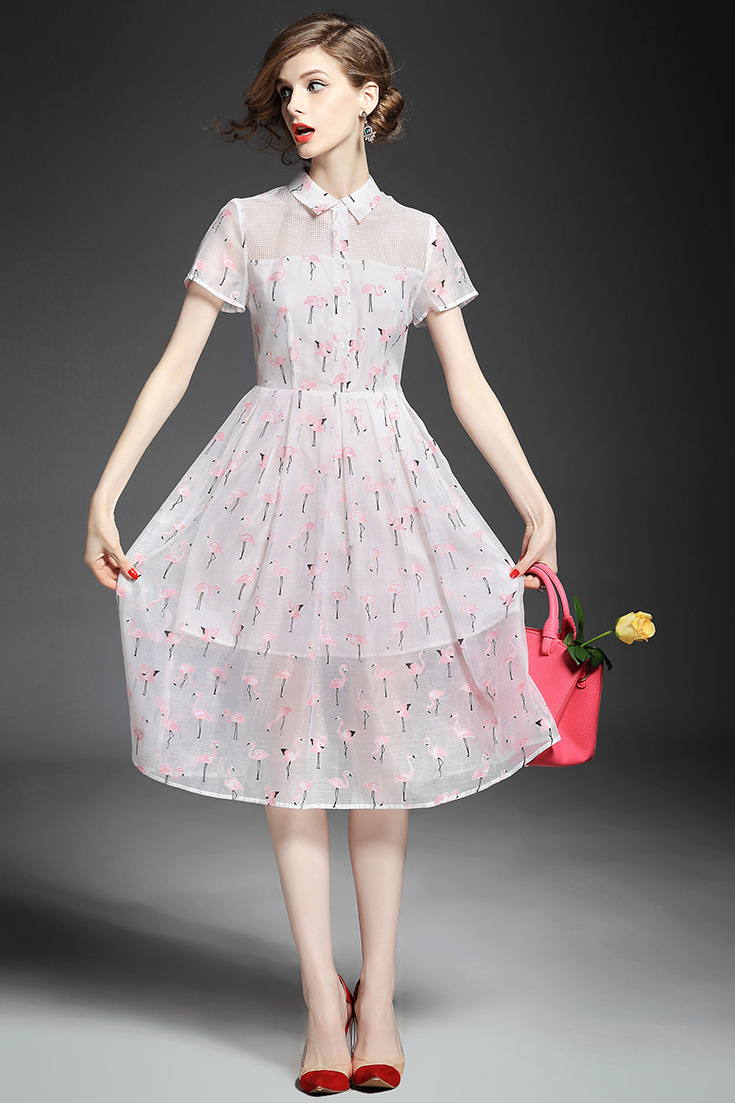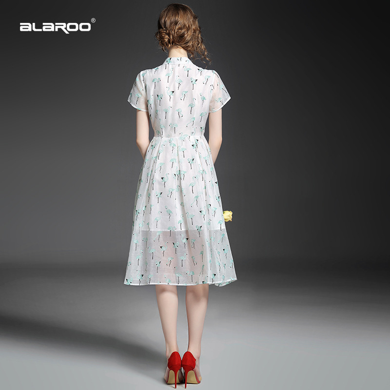 > 2015夏季女装 翻领气质淑女网纱拼接印花大摆a字裙修身显瘦