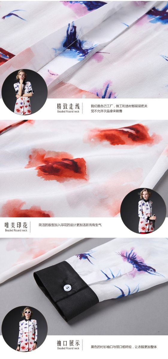 2015欧美风高端春装真丝衬衫女长袖欧洲站桑蚕丝上衣衬衣