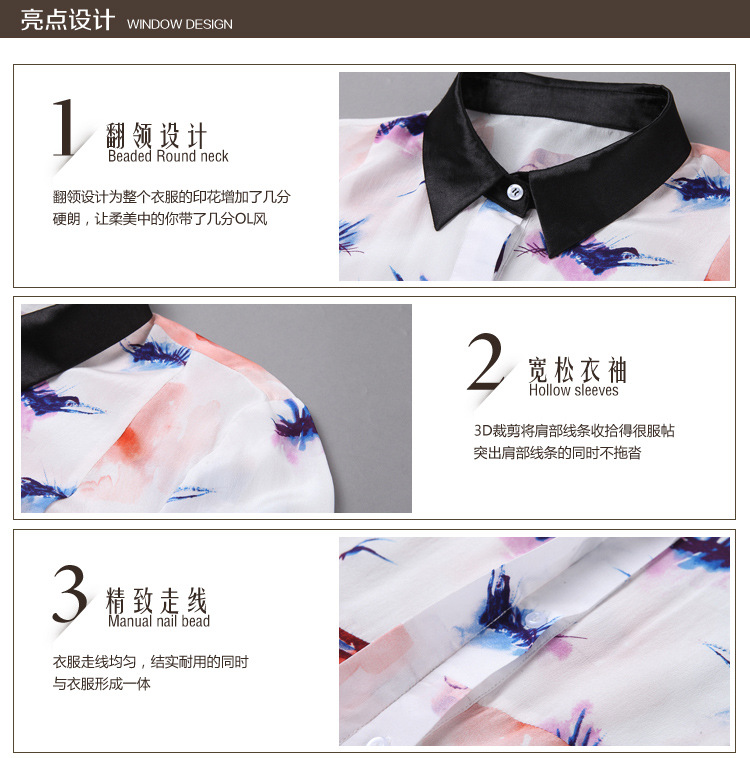 2015春夏新款真丝雪纺衫桑蚕丝印花七分袖长款真丝上衣衬衣