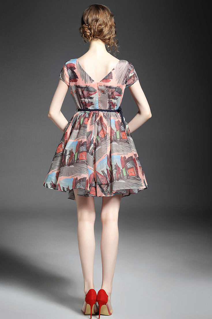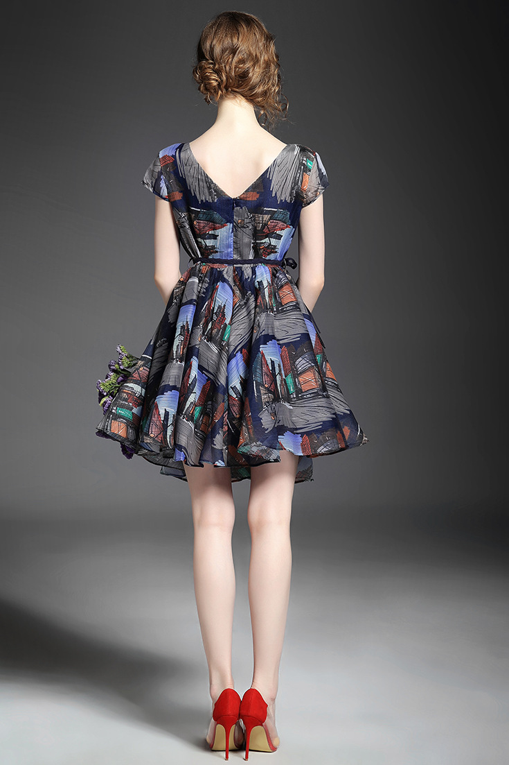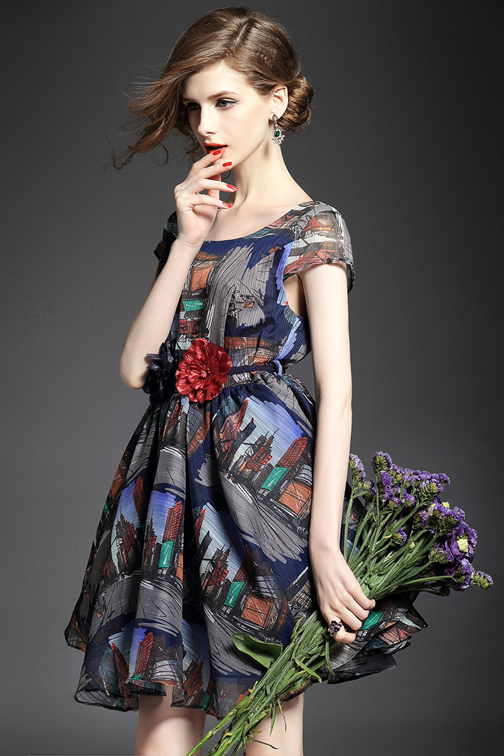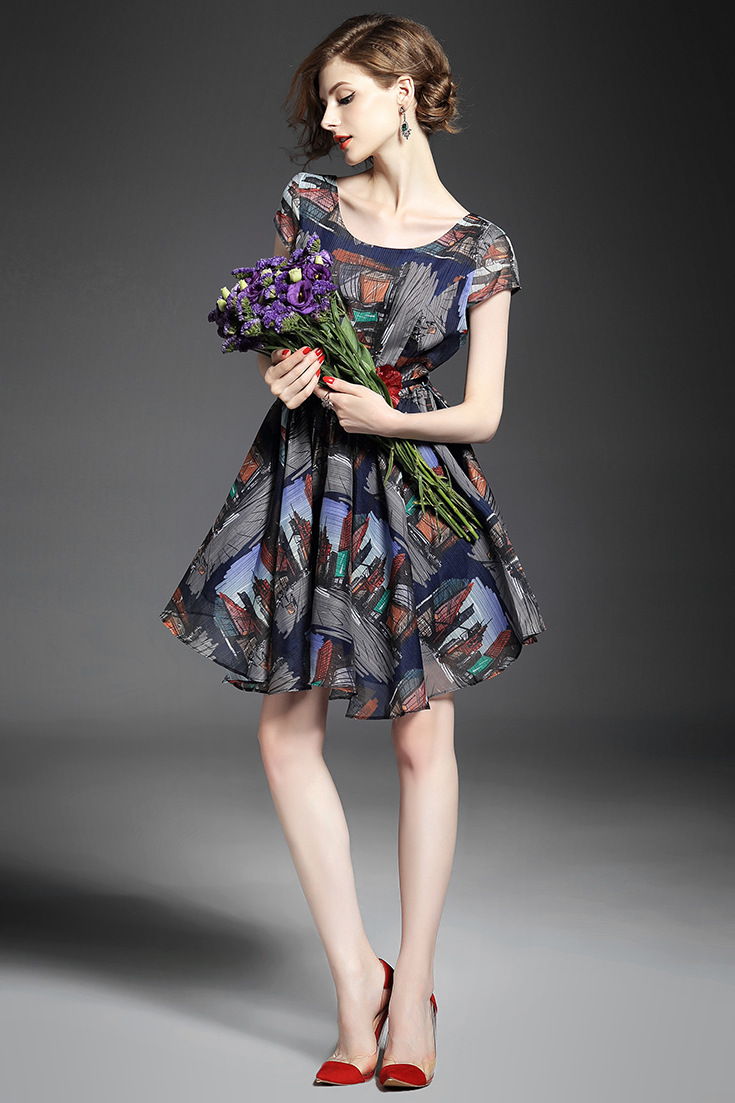 > 2015欧洲站夏季新款 圆领时尚露背修身不规则大摆a字裙气质连衣裙