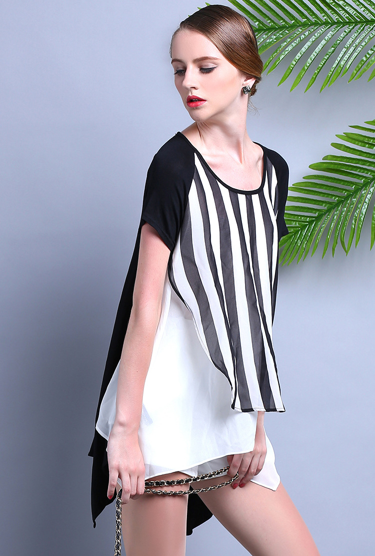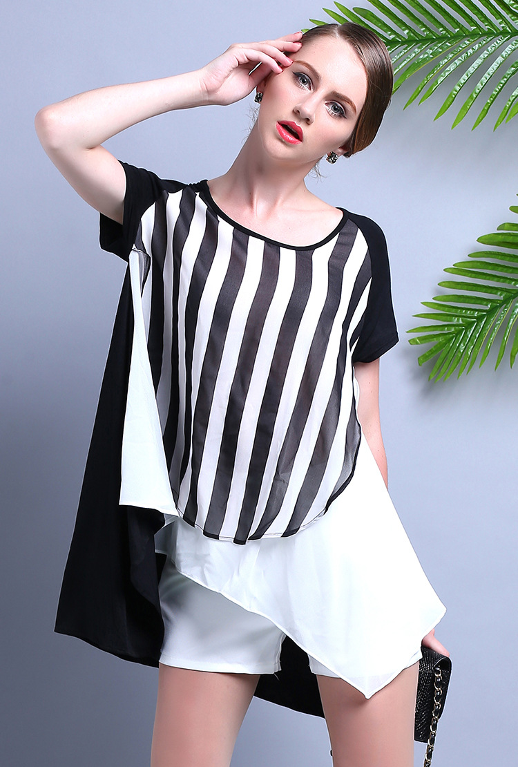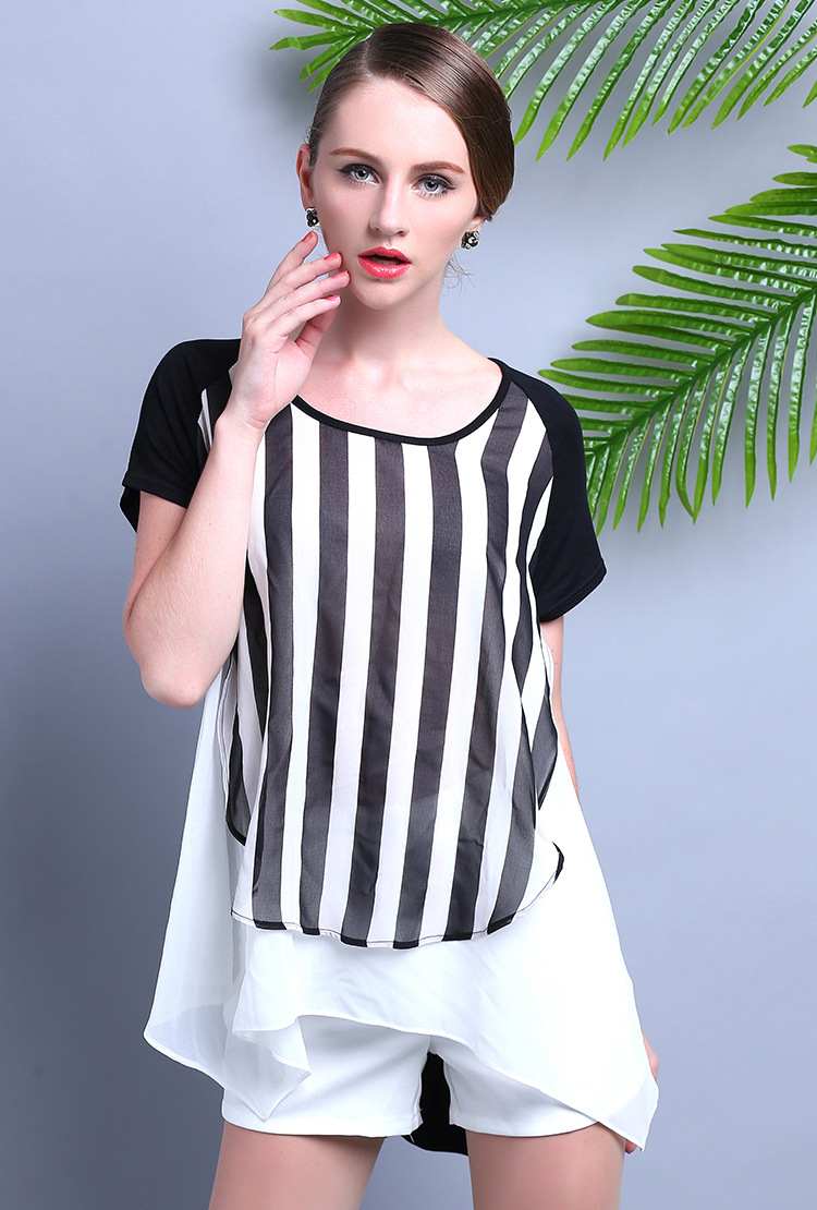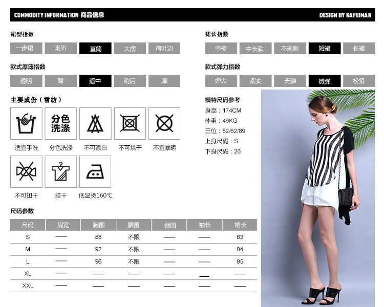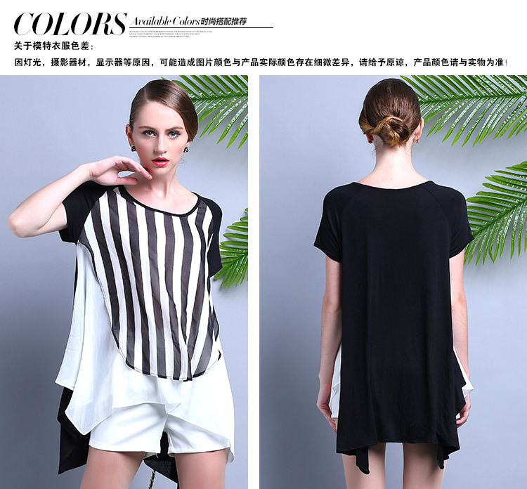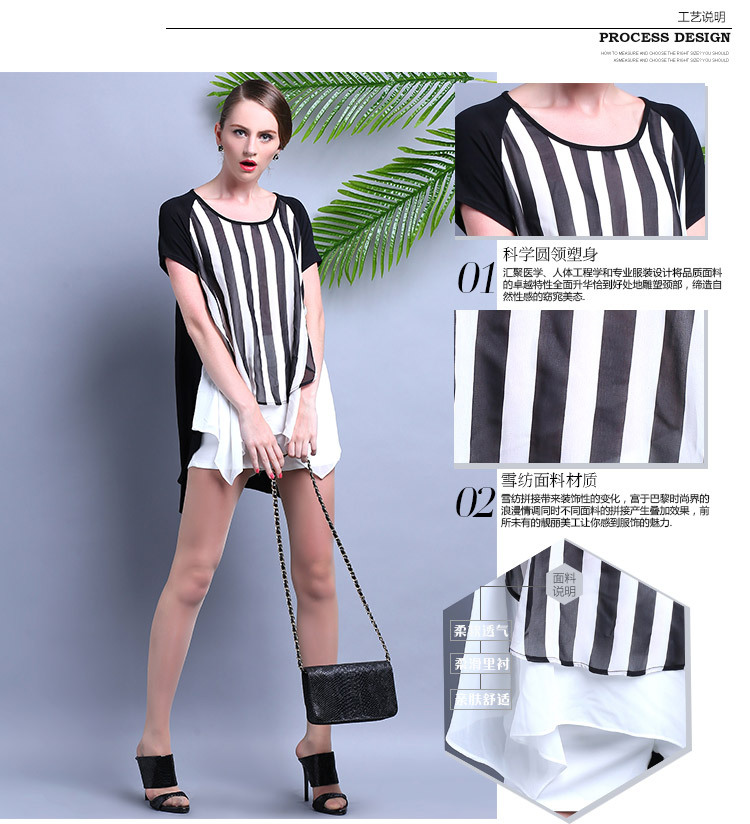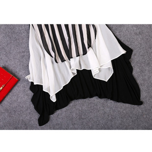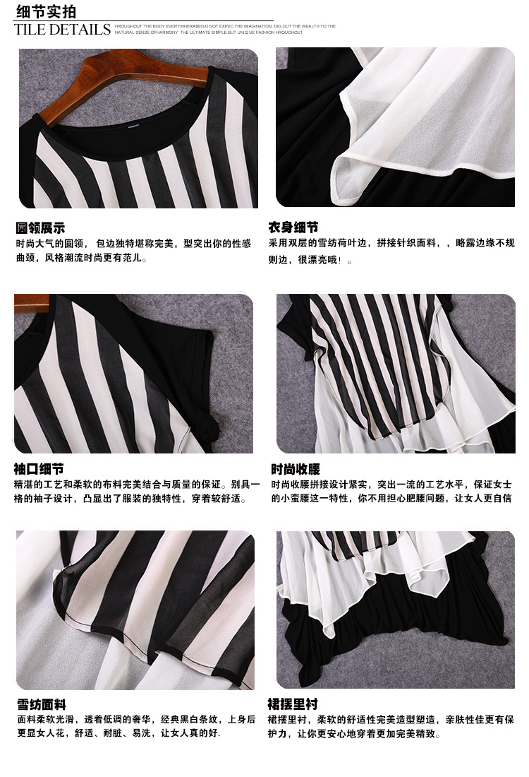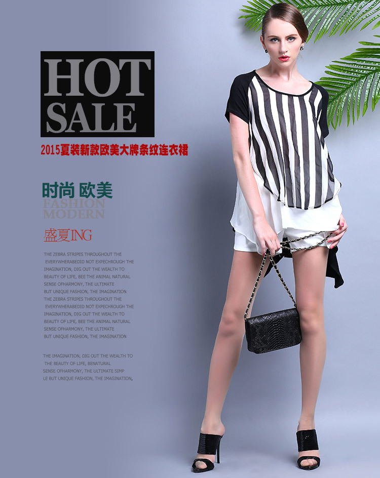 2015夏装 时尚女装 欧美大牌气质优雅宽松条纹雪纺连衣裙
